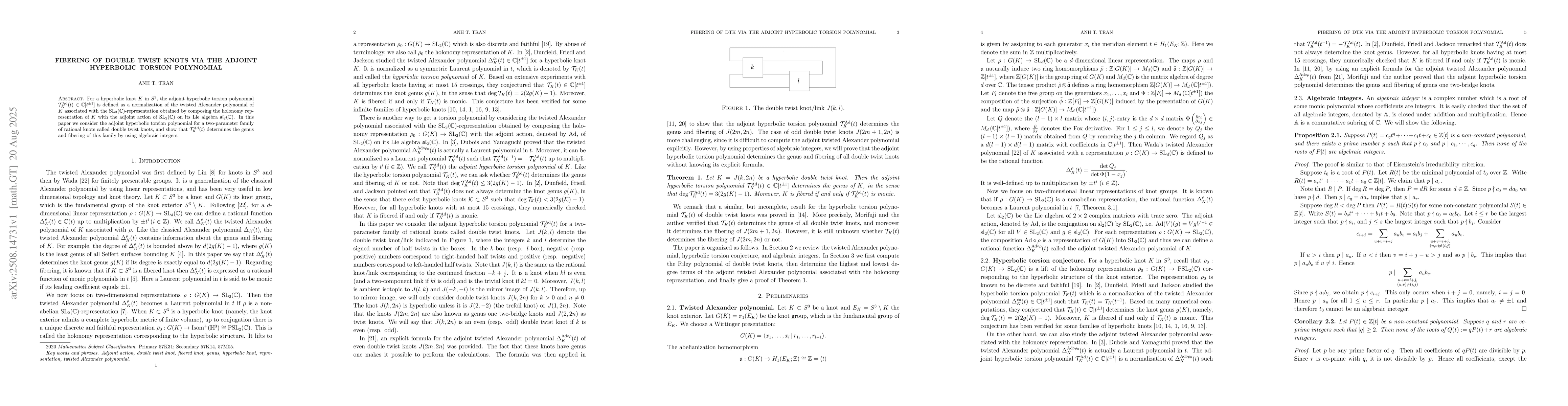 The paper introduces a novel approach using the adjoint hyperbolic torsion polynomial to determine the genus and fibering of double twist knots, linking it to algebraic integers for classification.
