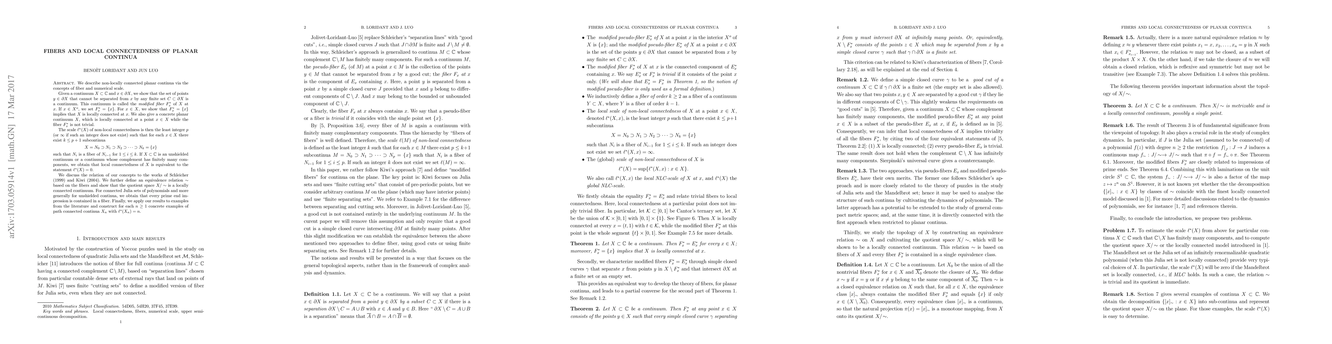 The paper introduces the notion of modified fibers and the numerical scale of non-local connectedness, providing a framework for analyzing the local connectedness properties of planar continua.