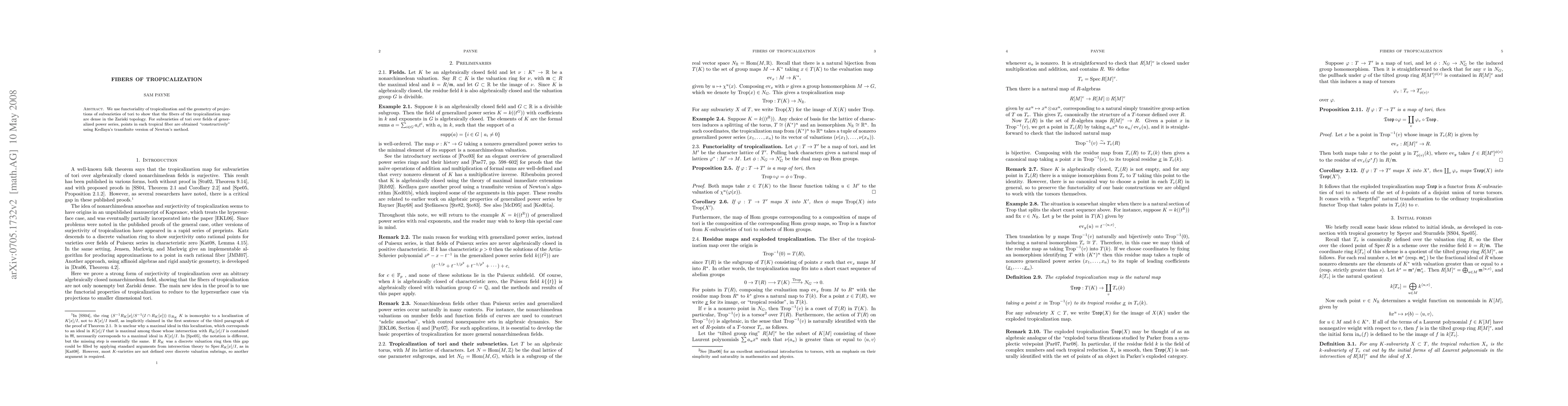 This paper demonstrates that the fibers of tropicalization maps are dense in the Zariski topology by leveraging the functoriality of tropicalization and the geometric properties of projections of subvarieties of tori. It also outlines a constructive method using Kedlaya's transfinite Newton's method to obtain points in these tropical fibers over fields of generalized power series.