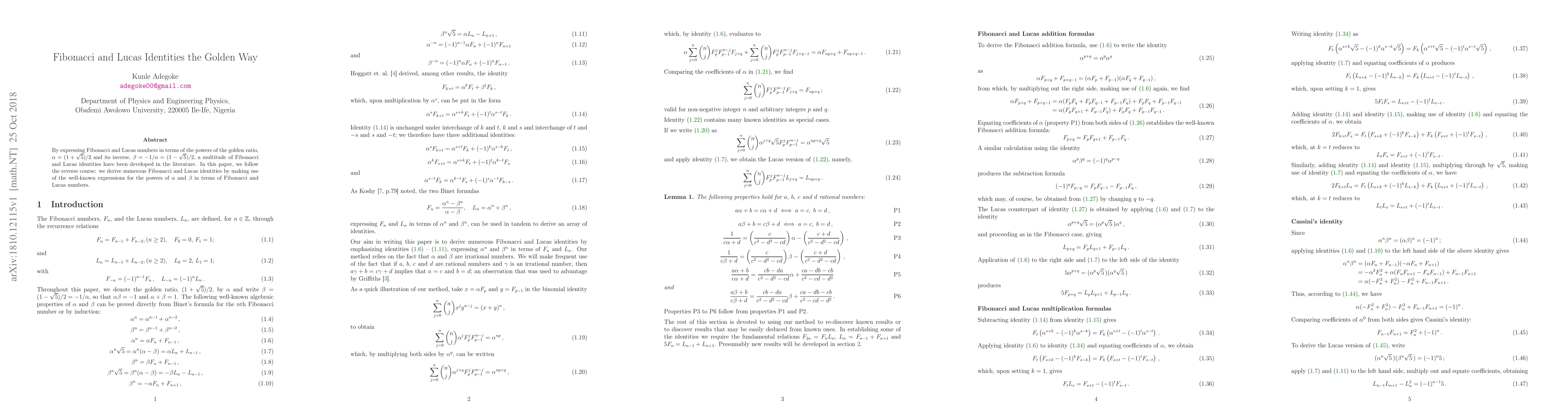 By expressing Fibonacci and Lucas numbers in terms of the powers of the golden ratio, $\alpha=(1+\sqrt 5)/2$ and its inverse, $\beta=-1/\alpha=(1-\sqrt 5)/2$, a multitude of Fibonacci and Lucas identities have been developed in the literature. In this paper, we follow the reverse course: we derive numerous Fibonacci and Lucas identities by making use of the well-known expressions for the powers of $\alpha$ and $\beta$ in terms of Fibonacci and Lucas numbers.