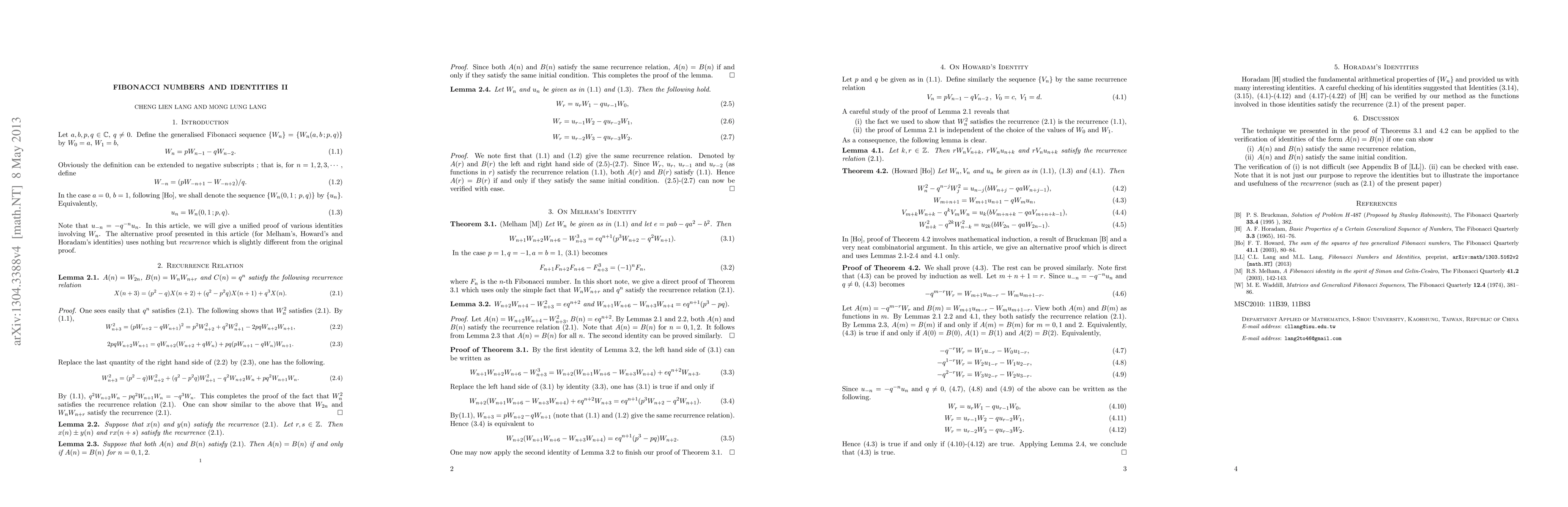 We give alternative proof of Melham's and Howard's identities on generalised Fibonacci numbers