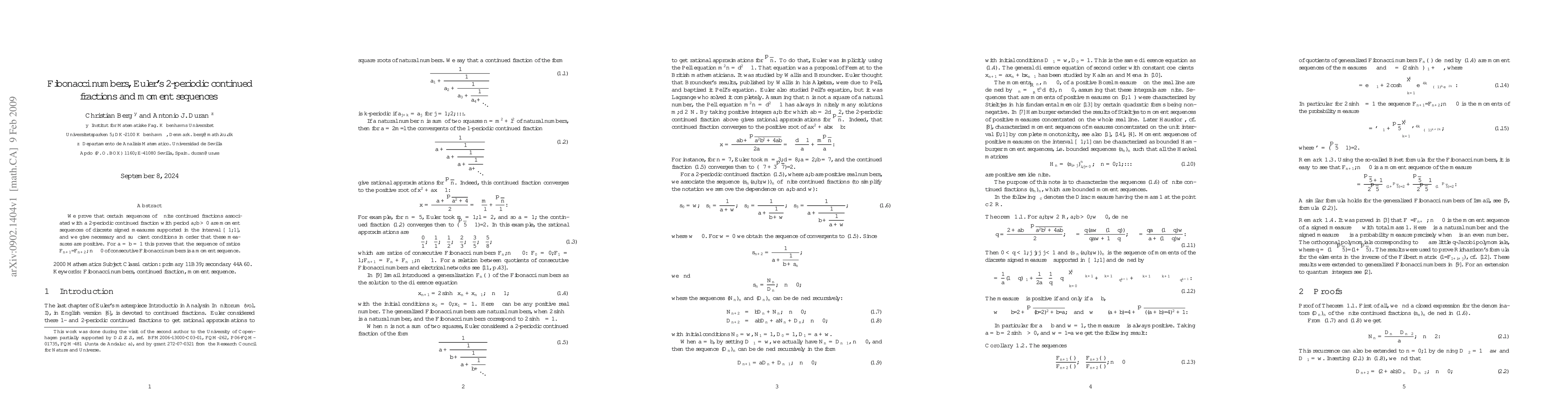 This paper proves that sequences of finite continued fractions from a 2-periodic continued fraction with positive period terms are moment sequences for discrete signed measures in [-1,1], and establishes conditions for these measures to be positive. Specifically, it shows that the sequence of consecutive Fibonacci number ratios F_{n+1}/F_{n+2} is a moment sequence.