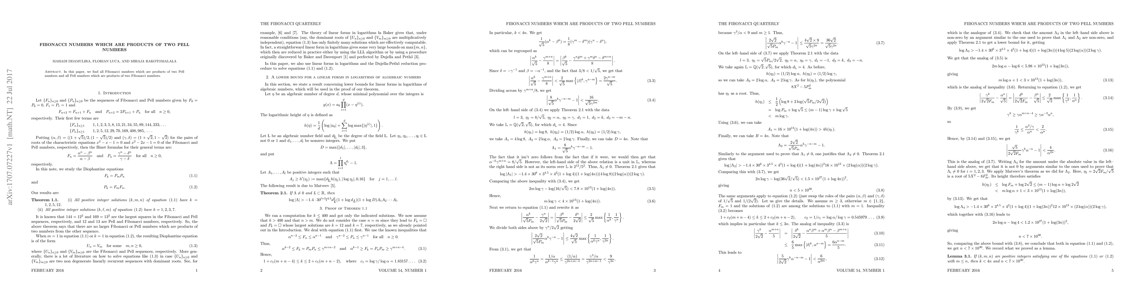Researchers discovered Fibonacci numbers that can be expressed as products of two Pell numbers and vice versa, providing a new insight into the relationships between these mathematical sequences.