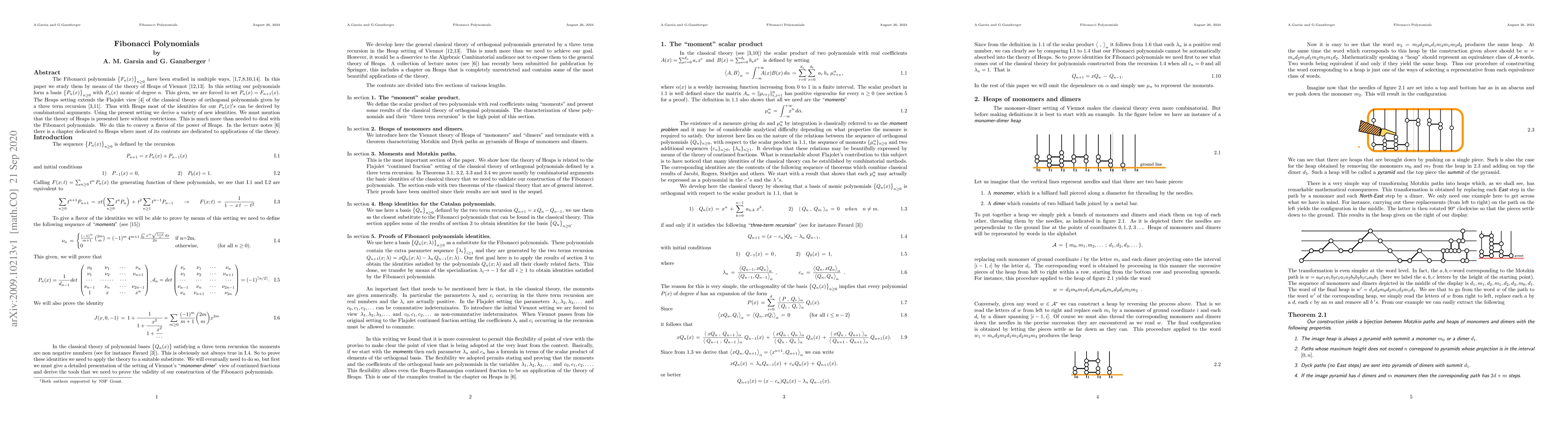 Researchers study Fibonacci polynomials using Heaps theory, deriving new identities through combinatorial arguments and showcasing the power of this framework in analyzing orthogonal polynomials.