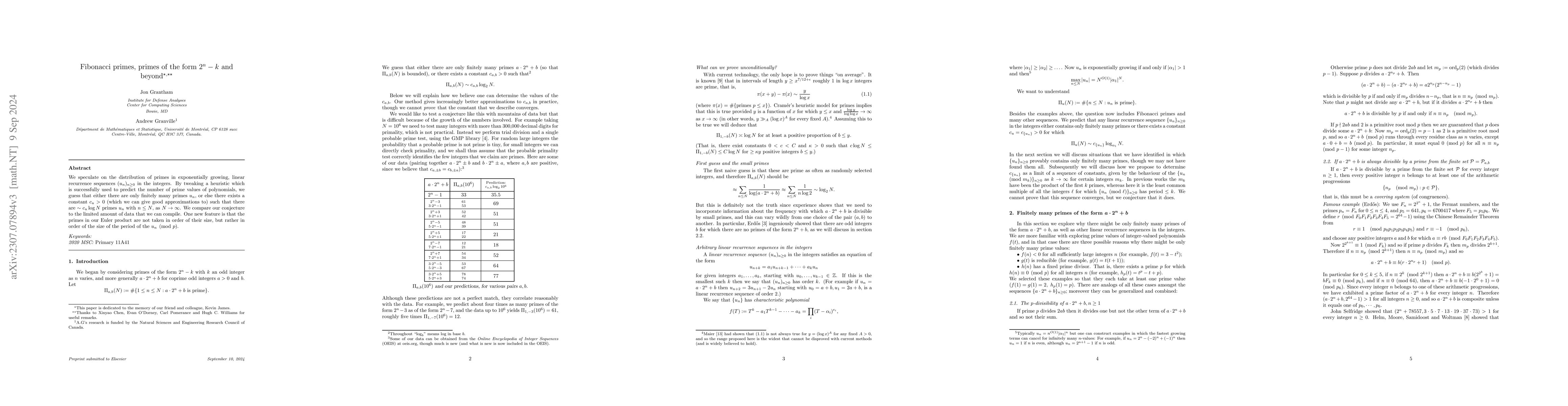 This paper explores the distribution of primes in sequences defined by linear recurrences, like Fibonacci numbers, and proposes a heuristic suggesting that either only finitely many such primes exist or that their count grows logarithmically with the sequence's upper bound. The authors compare their conjecture to available data.
