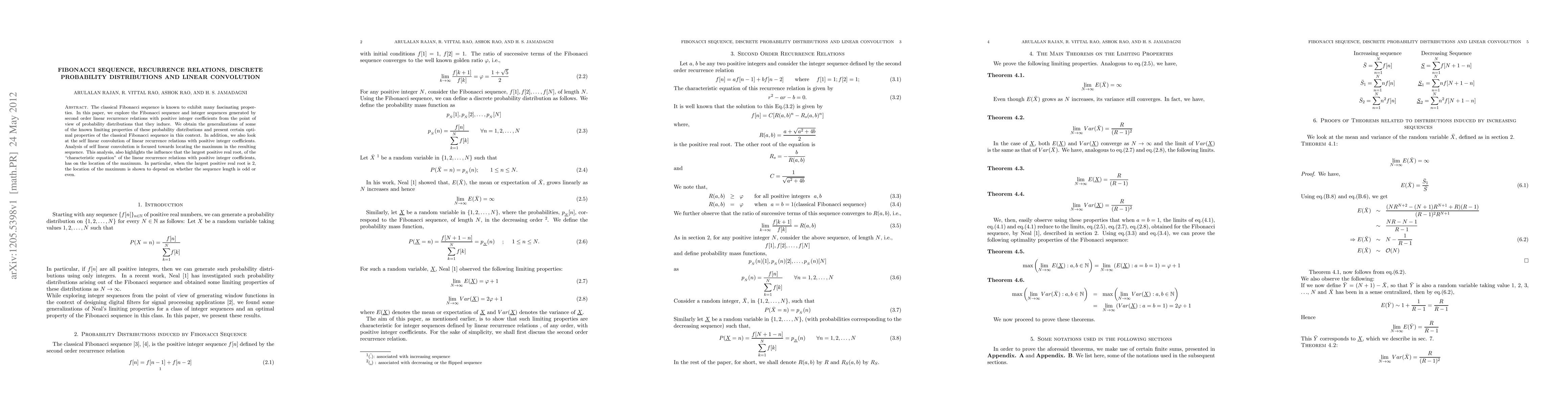 This paper investigates the probability distributions induced by Fibonacci sequences and similar integer sequences defined by second-order linear recurrence relations. It generalizes known limiting properties and highlights the optimal properties of the Fibonacci sequence, while also analyzing the self linear convolution of these sequences, focusing on the location of the maximum value influenced by the largest positive real root of the characteristic equation.