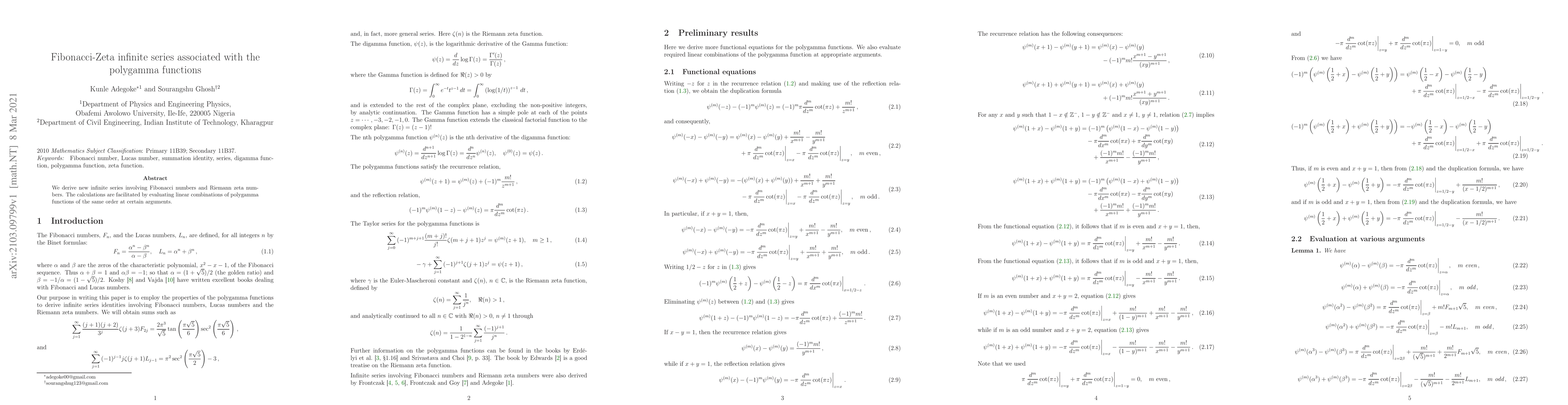 Summary: This paper introduces new infinite series combining Fibonacci numbers and Riemann zeta values, derived through the evaluation of specific linear combinations of polygamma functions. The methodology leverages the properties of polygamma functions to achieve the results.