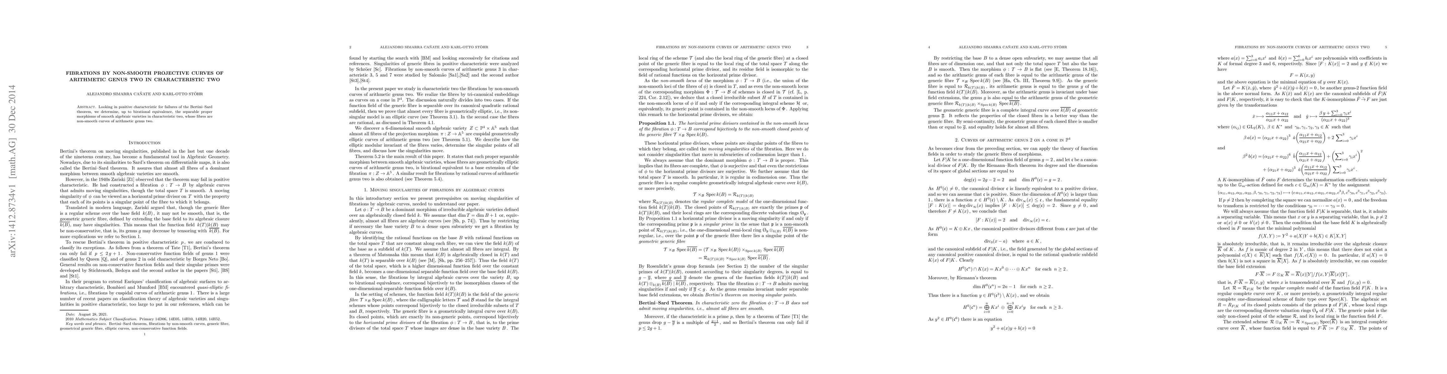 Researchers investigate fibration of smooth algebraic varieties in characteristic two with non-smooth curves of arithmetic genus two, focusing on separable proper morphisms.