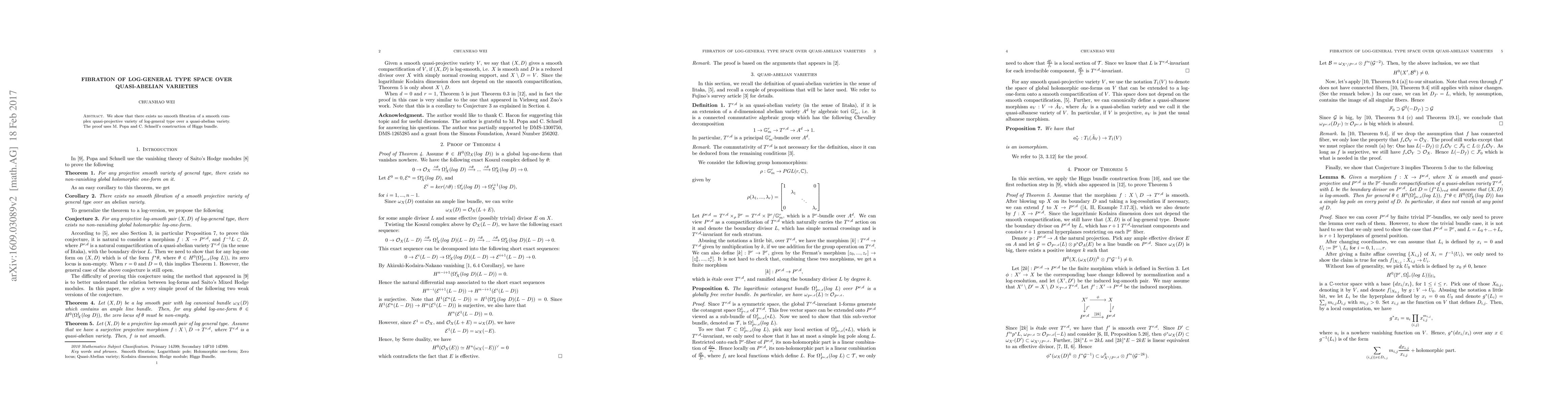 A recent research paper shows that there cannot exist a smooth fibration of a log-general type space over a quasi-abelian variety, using the Higgs bundle construction method.