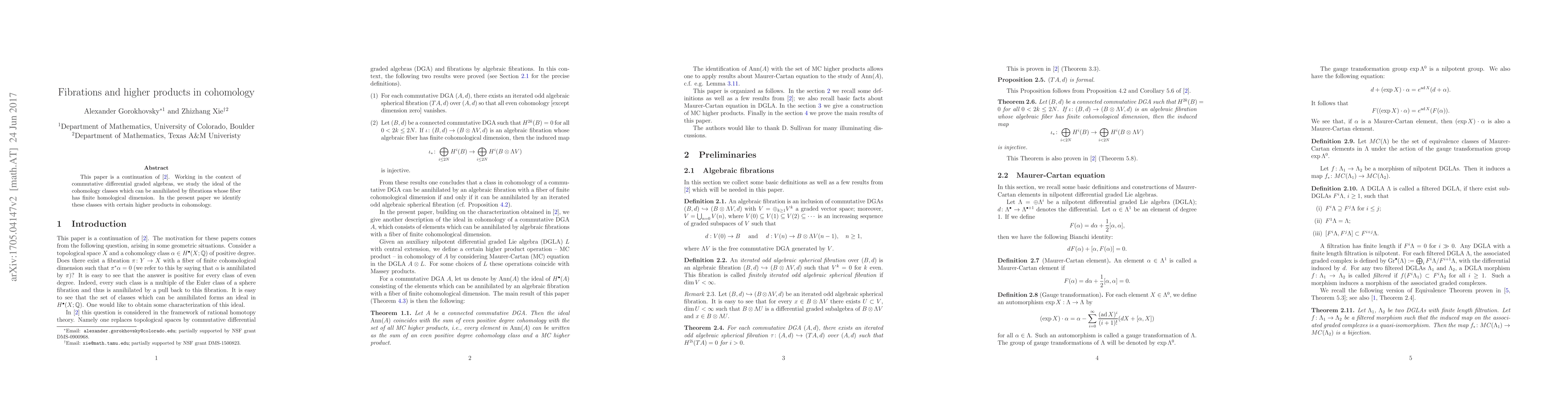 This paper is a continuation of a previous paper joint with Dennis Sullivan (arXiv:1704.04308). Working in the context of commutative differential graded algebras, we study the ideal of the cohomology classes which can be annihilated by fibrations whose fiber has finite homological dimension. In the present paper we identify these classes with certain higher products in cohomology.