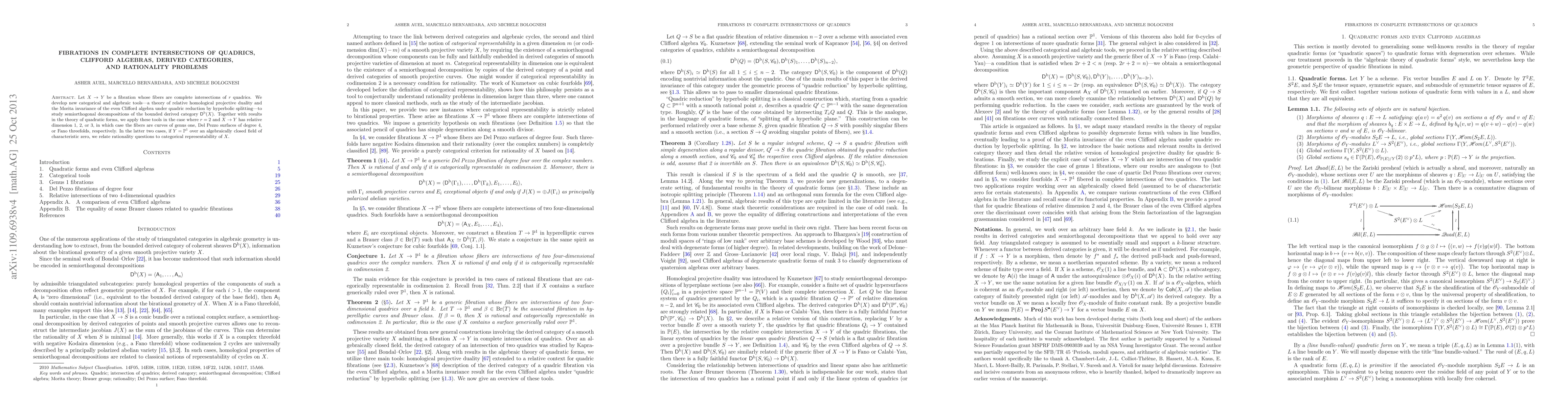 This paper develops novel tools to analyze fibrations over complete intersections of quadrics, utilizing relative homological projective duality and Clifford algebra theory to study the derived category of the fibration. It links rationality questions for higher-dimensional fibers to categorical properties in the context of projective geometry.