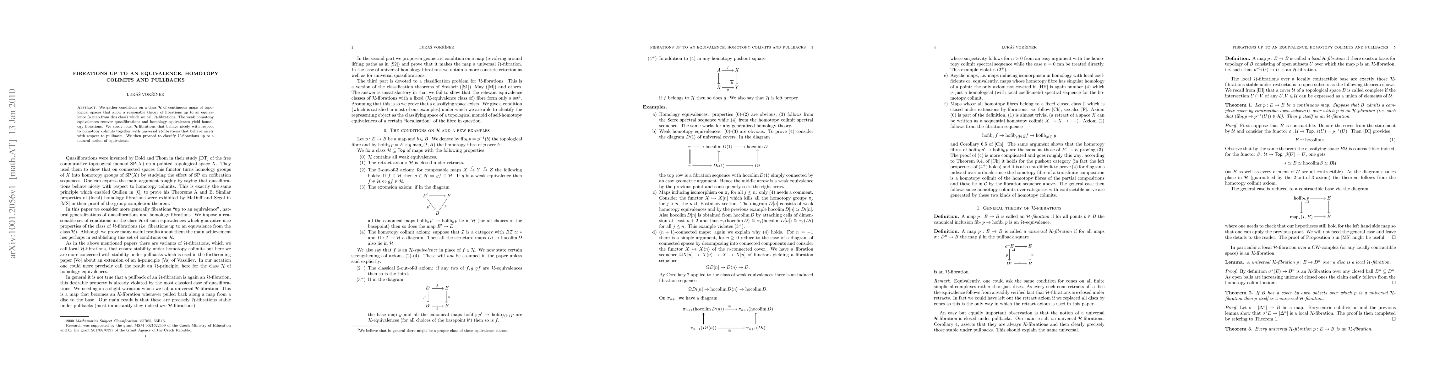 We gather conditions on a class H of continuous maps of topological spaces that allow a reasonable theory of fibrations up to an equivalence (a map from this class) which we call H-fibrations. The weak homotopy equivalences recover quasifibrations and homology equivalences yield homology fibrations. We study local H-fibrations that behave nicely with respect to homotopy colimits together with universal H-fibrations that behave nicely with respect to pullbacks. We then proceed to classify H-fibrations up to a natural notion of equivalence.