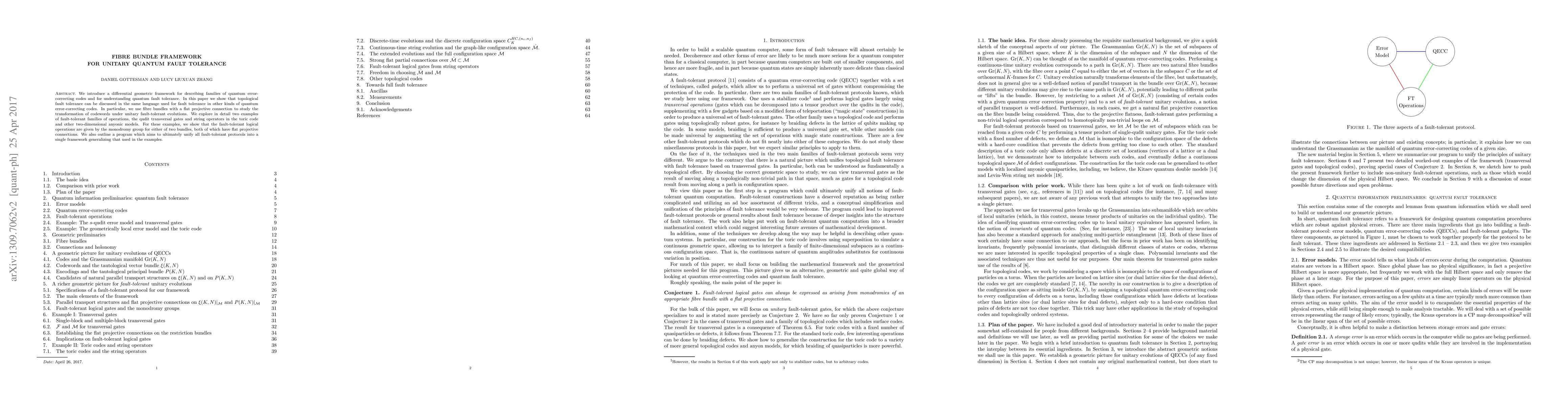 This paper proposes a differential geometric framework using fibre bundles to describe quantum error-correcting codes and fault tolerance, unifying topological and other types of quantum error correction. It constructs explicit fibre bundles for specific fault-tolerant operations, illustrating the framework's application.