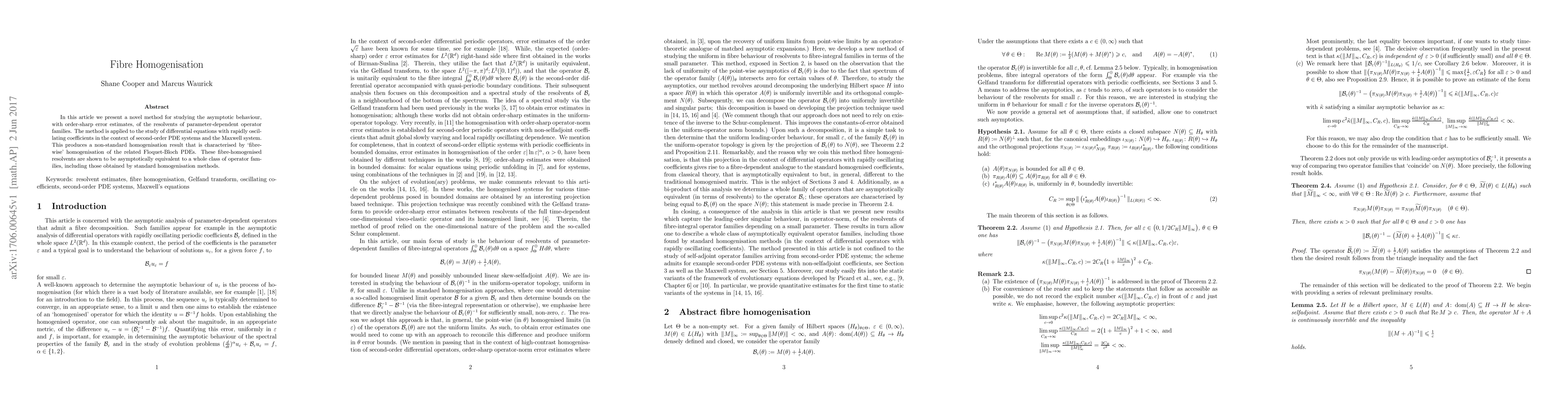 In this article we present a novel method for studying the asymptotic behaviour, with order-sharp error estimates, of the resolvents of parameter-dependent operator families. The method is applied to the study of differential equations with rapidly oscillating coefficients in the context of second-order PDE systems and the Maxwell system. This produces a non-standard homogenisation result that is characterised by `fibre-wise' homogenisation of the related Floquet-Bloch PDEs. These fibre-homogenised resolvents are shown to be asymptotically equivalent to a whole class of operator families, including those obtained by standard homogenisation methods.