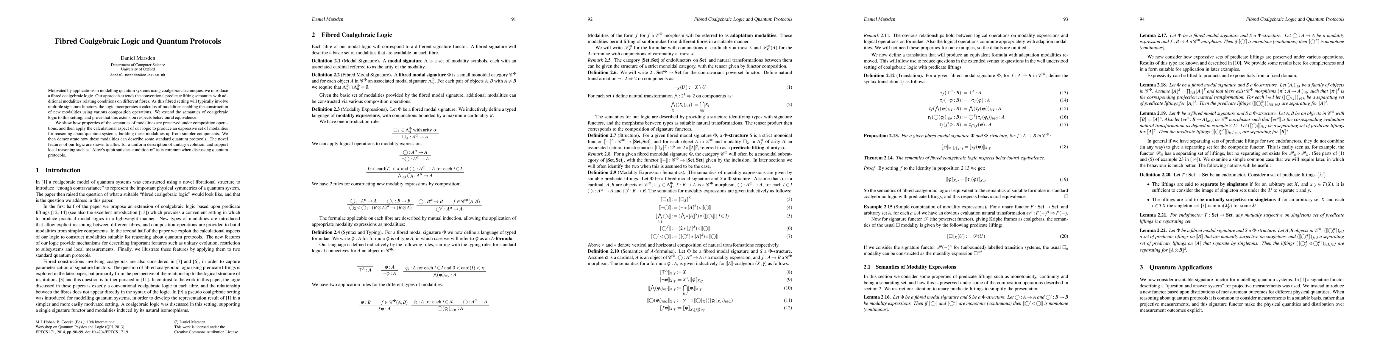 This paper introduces a fibred coalgebraic logic to model quantum systems, extending conventional predicate lifting semantics with new modalities for conditions across different fibres. The logic is shown to respect behavioural equivalence and can describe standard quantum protocols, supporting local reasoning and unitary evolution.