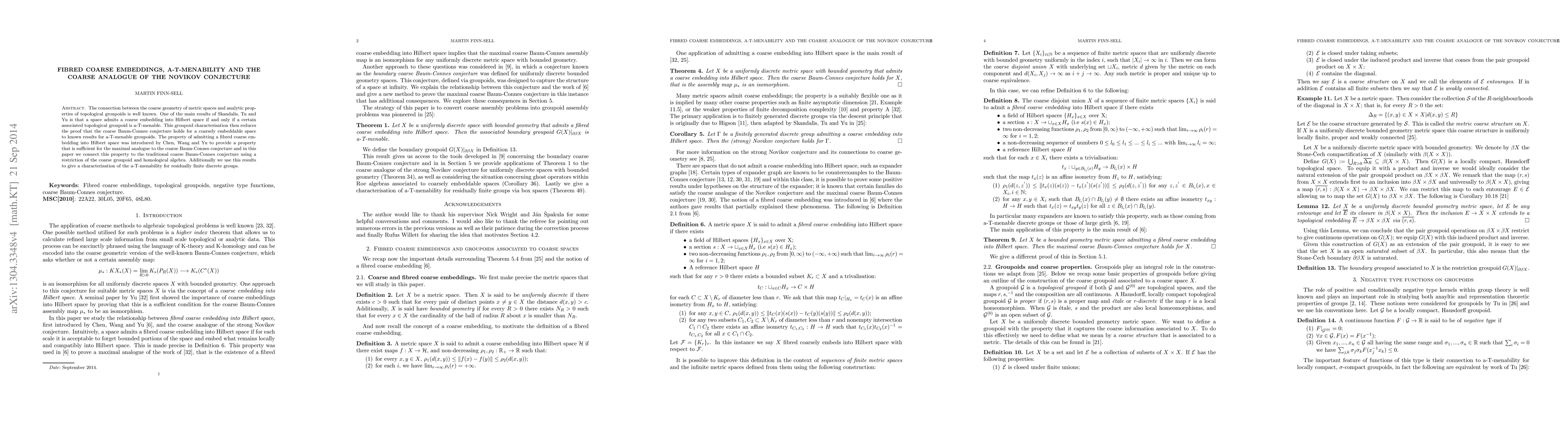 The connection between the coarse geometry of metric spaces and analytic properties of topological groupoids is well known. One of the main results of Skandalis, Tu and Yu is that a space admits a coarse embedding into Hilbert space if and only if a certain associated topological groupoid is a-T-menable. This groupoid characterisation then reduces the proof that the coarse Baum-Connes conjecture holds for a coarsely embeddable space to known results for a-T-menable groupoids. The property of admitting a fibred coarse embedding into Hilbert space was introduced by Chen, Wang and Yu to provide a property that is sufficient for the maximal analogue to the coarse Baum-Connes conjecture and in this paper we connect this property to the traditional coarse Baum-Connes conjecture using a restriction of the coarse groupoid and homological algebra. Additionally we use this results to give a characterisation of the a-T-menability for residually finite discrete groups.