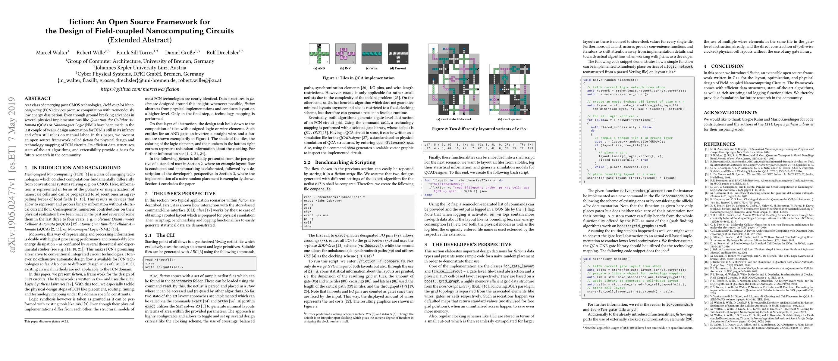 This paper introduces fiction, an open source framework designed to automate the physical design and technology mapping for Field-coupled Nanocomputing (FCN) circuits, aiming to reduce the reliance on manual labor and support future research in this emerging post-CMOS technology. The framework leverages efficient data structures and advanced algorithms for its implementation.