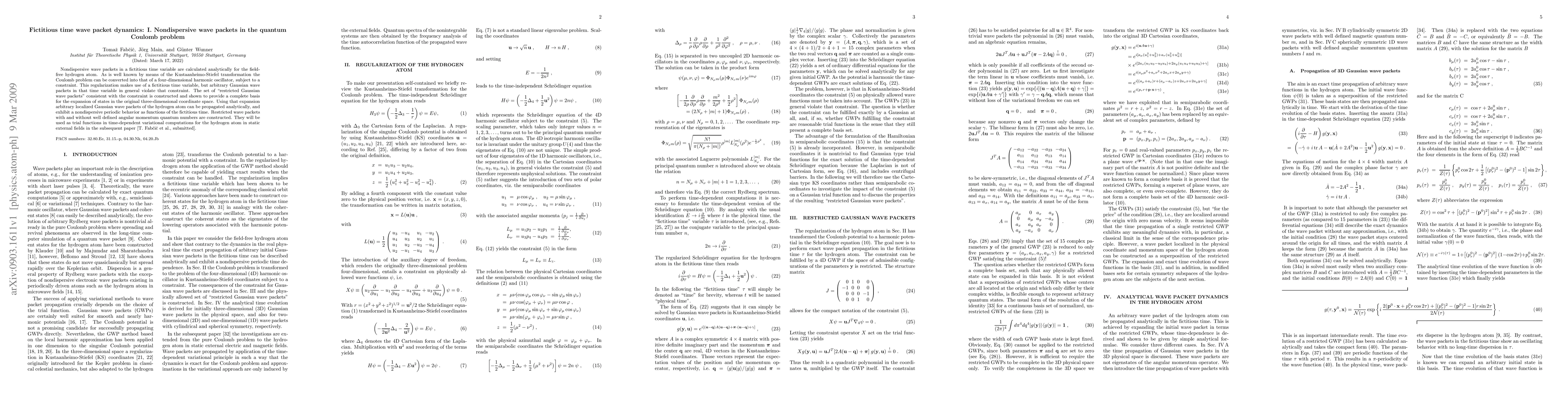 Researchers created a new way to study atoms using a 'fictitious time' variable, allowing for precise calculations of wave packet dynamics in the hydrogen atom. They found that specific Gaussian wave packets exhibit nondispersive behavior as functions of fictitious time.