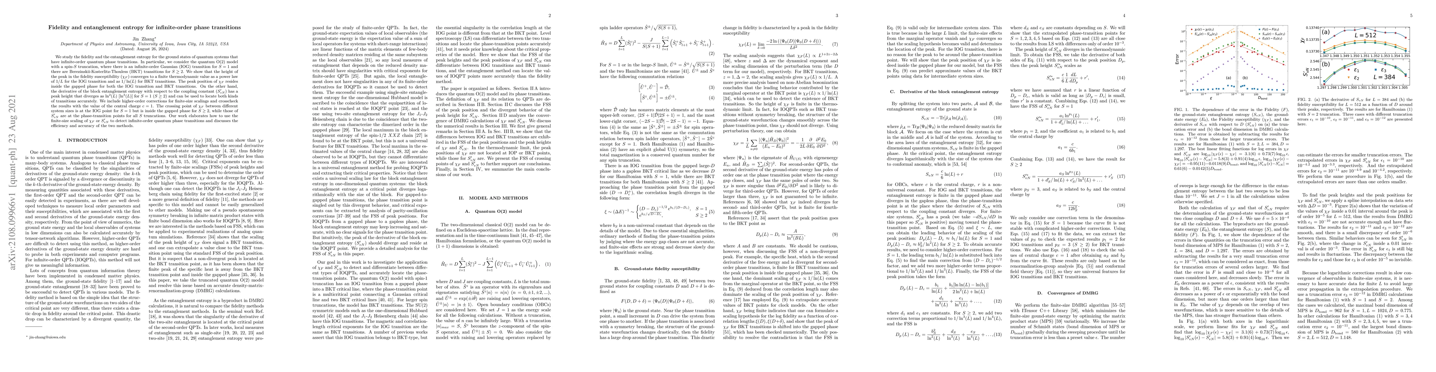 This research investigates the fidelity susceptibility and entanglement entropy in quantum systems experiencing infinite-order and Berezinskii-Kosterlitz-Thouless phase transitions. It finds that the fidelity susceptibility peaks converge to finite values, while the entanglement entropy derivative peaks diverge, aiding in the detection of these transitions.