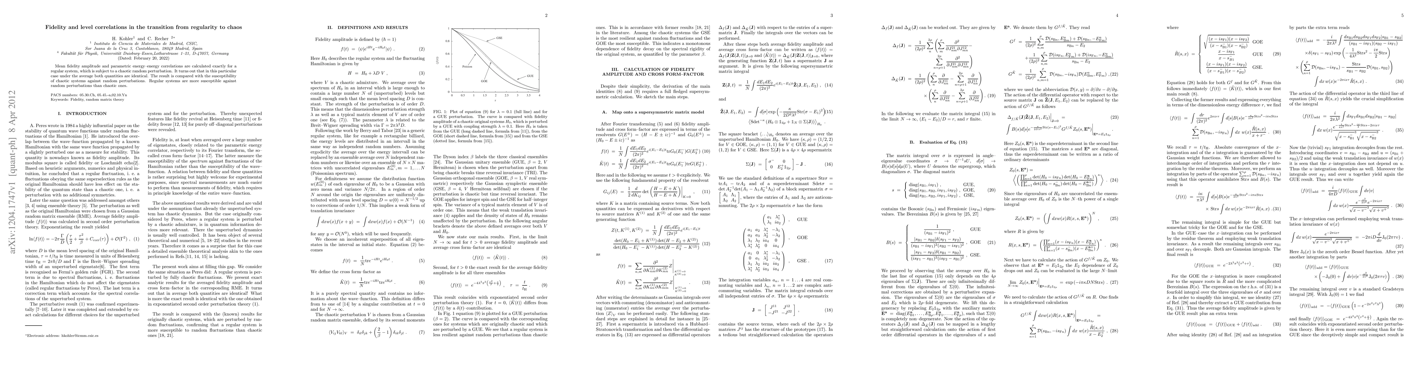 Mean fidelity amplitude and parametric energy--energy correlations are calculated exactly for a regular system, which is subject to a chaotic random perturbation. It turns out that in this particular case under the average both quantities are identical. The result is compared with the susceptibility of chaotic systems against random perturbations. Regular systems are more susceptible against random perturbations than chaotic ones.