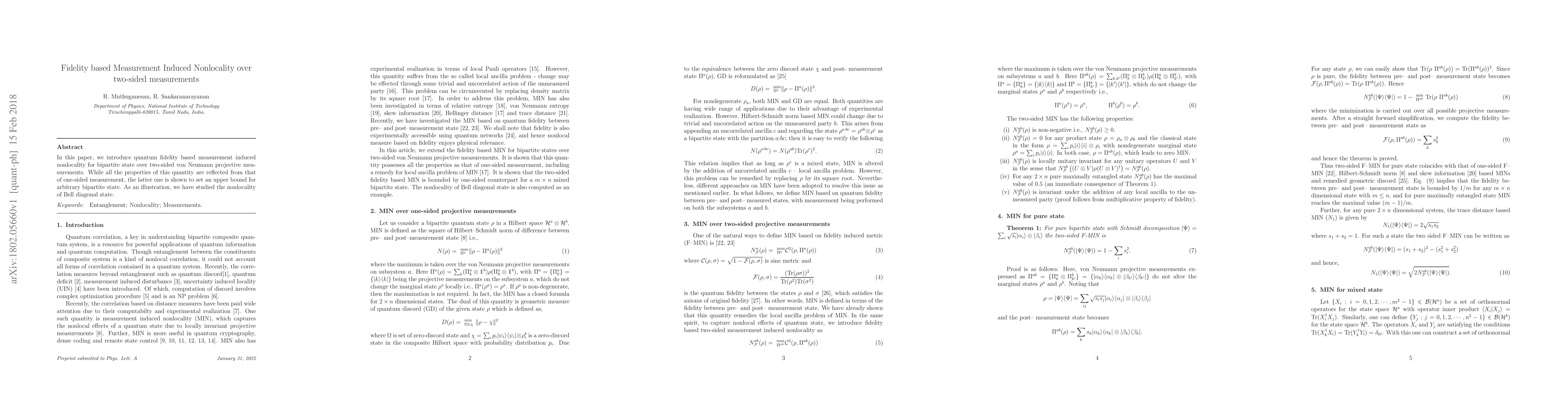 In this paper, we introduce quantum fidelity based measurement induced nonlocality for the bipartite state over two-sided von Neumann projective measurements. While all the properties of this quantity are reflected from that of one-sided measurement, the latter one is shown to set an upper bound for arbitrary bipartite state. As an illustration, we have studied the nonlocality of Bell diagonal state.