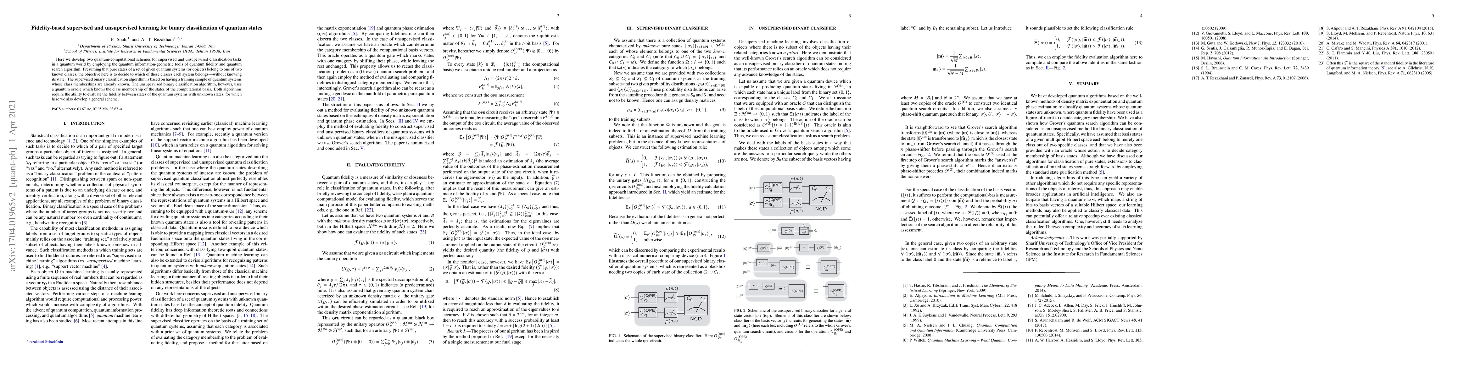 Here we develop two quantum-computational models for supervised and unsupervised classification tasks in quantum world. Presuming that the states of a set of given quantum systems (or objects) belong to one of two known classes, the objective here is to decide to which of these classes each system belongs -- without knowing its state. The supervised binary classification algorithm is based on having a training sample of quantum systems whose class memberships are already known. The unsupervised binary classification algorithm, however, uses a quantum oracle which knows the class memberships of the states of the computational basis. Both algorithms require the ability to evaluate the fidelity between states of the quantum systems with unknown states, for which here we also develop a general scheme.