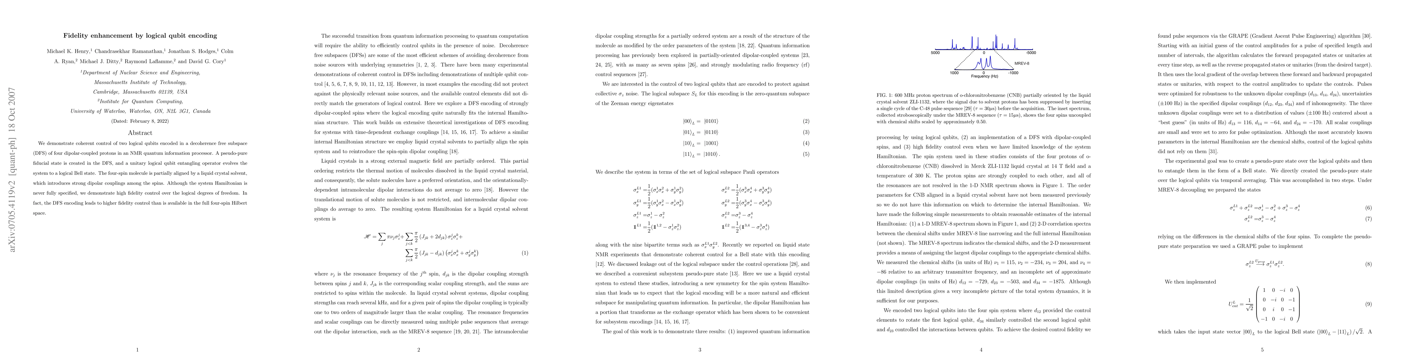 This work demonstrates improved control over logical qubits in a dipolar coupled spin system, with potential applications for quantum computing and quantum information processing.