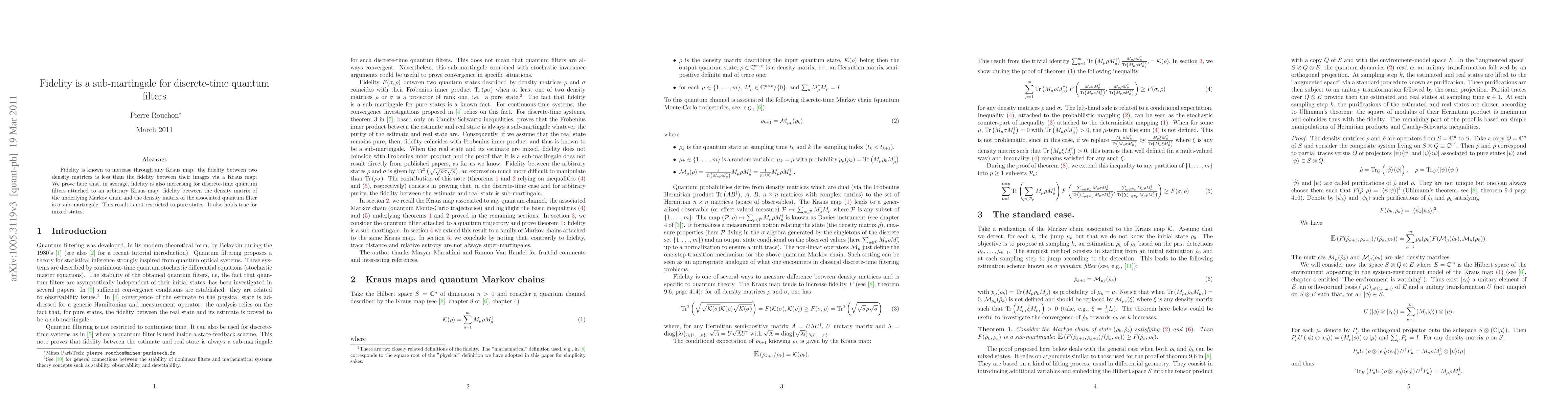 Fidelity is known to increase through any Kraus map: the fidelity between two density matrices is less than the fidelity between their images via a Kraus map. We prove here that, in average, fidelity is also increasing for any discrete-time quantum filter: fidelity between the density matrix of the underlying Markov chain and the density matrix of its associated quantum filter is a sub-martingale. This result is not restricted to pure states. It also holds true for mixed states.