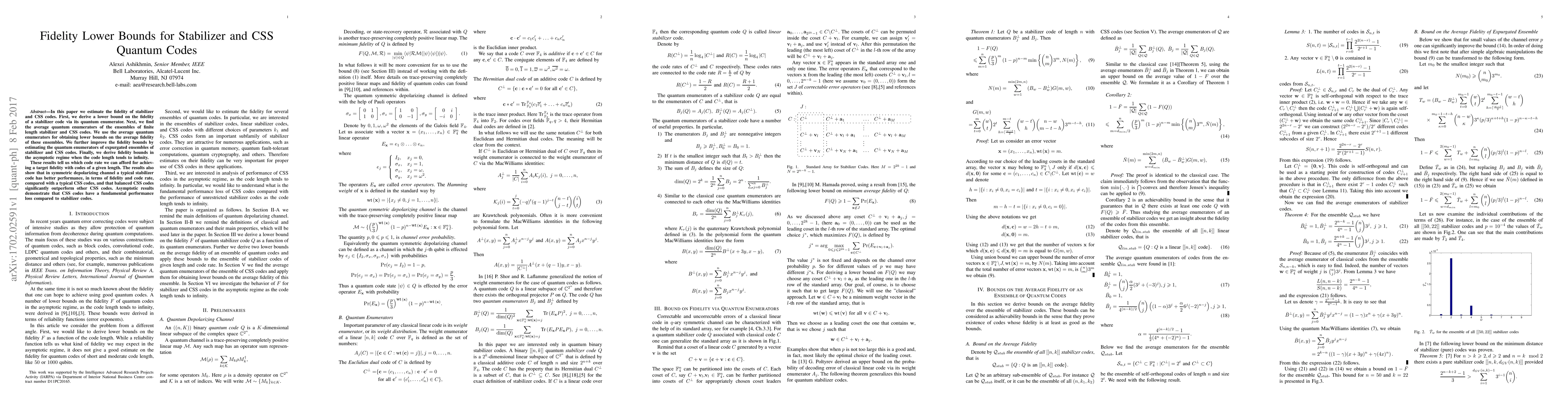This paper establishes lower bounds on the fidelity of stabilizer and CSS quantum codes, using quantum enumerators and asymptotic analysis. It finds that, in symmetric depolarizing channels, typical stabilizer codes outperform typical CSS codes, while balanced CSS codes show superior performance among CSS codes.