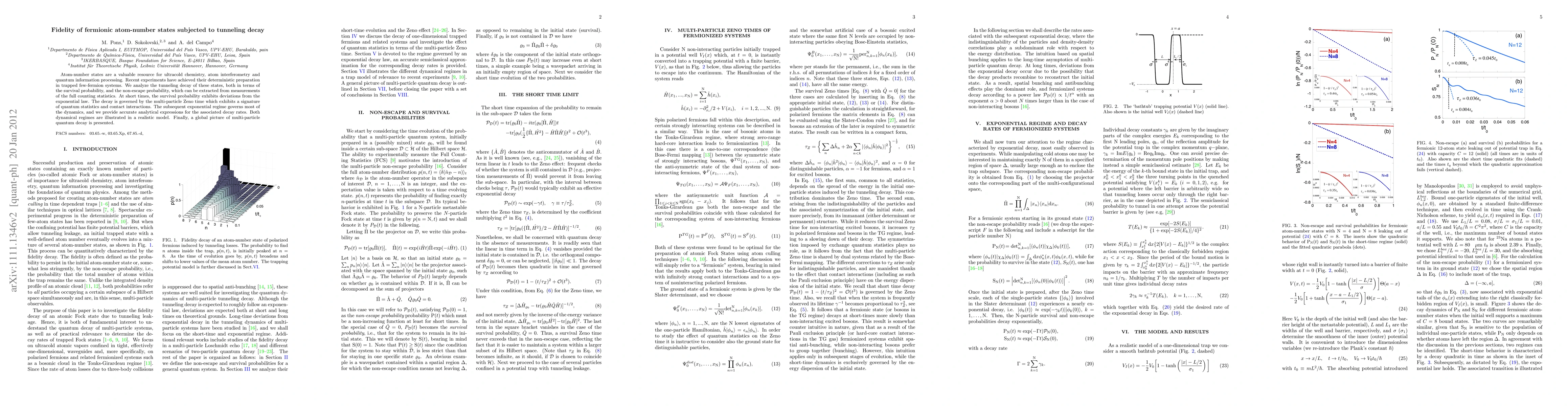 This paper investigates the tunneling decay of fermionic atom-number states in trapped few-fermion systems, revealing deviations from exponential decay at short times governed by the multi-particle Zeno time. It provides analytical expressions for decay rates and illustrates both dynamical regimes in a realistic model.