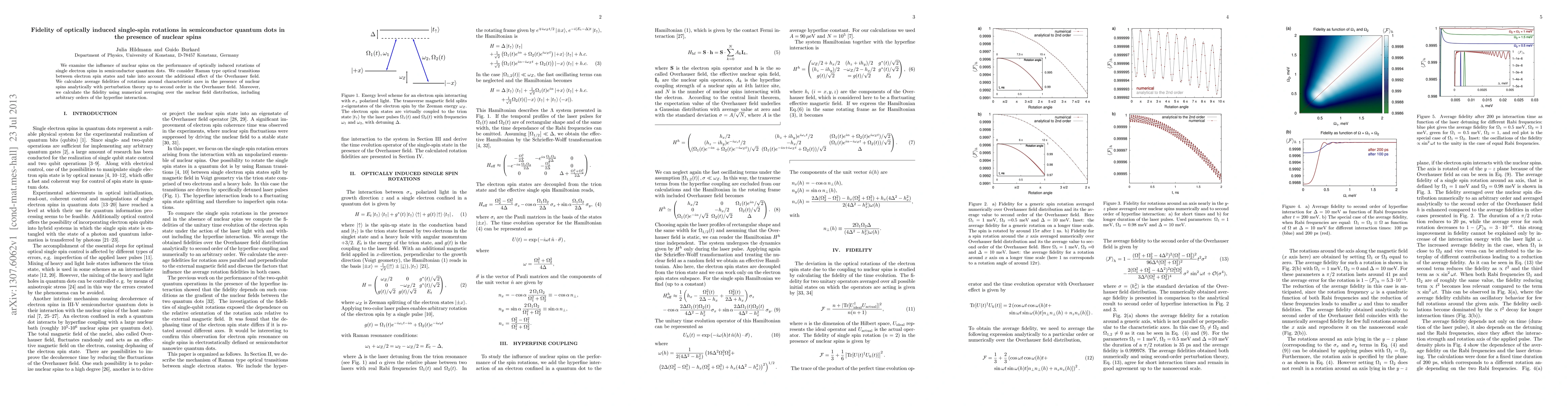 This paper investigates the impact of nuclear spins on optically induced single-spin rotations in semiconductor quantum dots, focusing on Raman optical transitions and the Overhauser field. Analytical and numerical methods are used to calculate the average fidelity of these rotations, considering the effects of nuclear spins and hyperfine interactions.