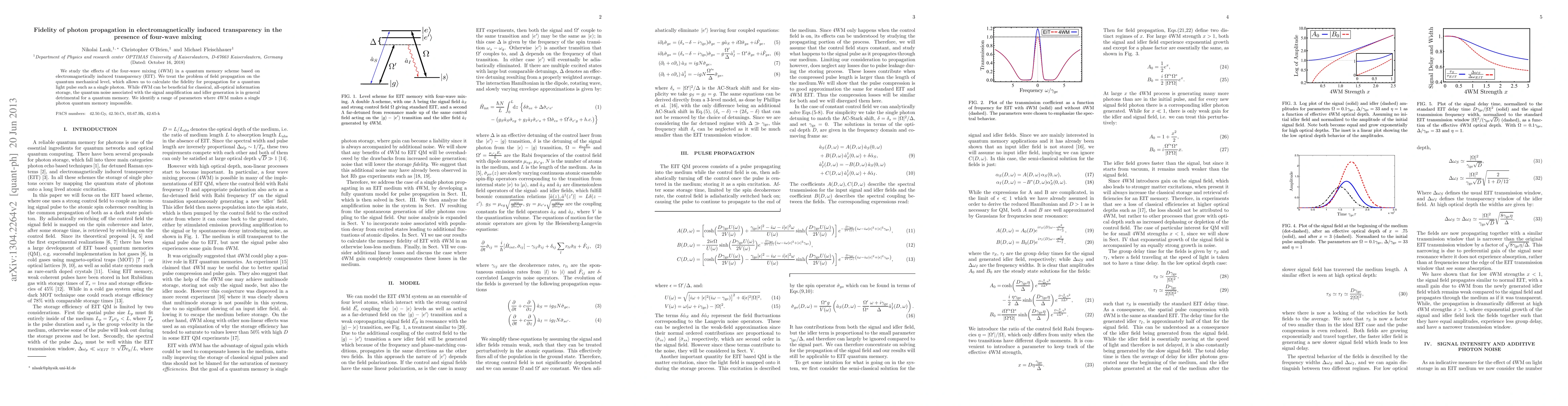 This paper investigates the impact of four-wave mixing on the fidelity of photon propagation in a quantum memory scheme utilizing electromagnetically induced transparency. It finds that while 4WM aids classical storage, it introduces quantum noise that can render single photon quantum memory ineffective under certain conditions.