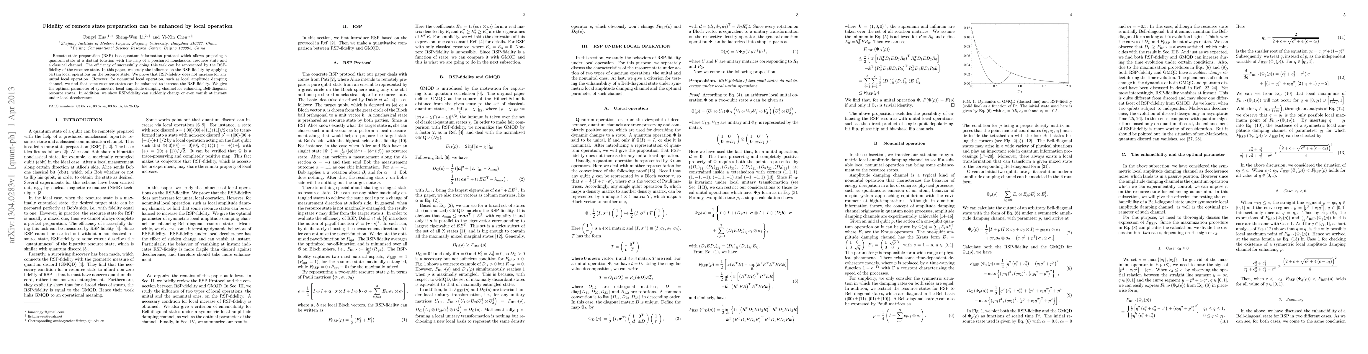 Remote state preparation (RSP) is a quantum information protocol which allows preparing a quantum state at a distant location with the help of a preshared nonclassical resource state and a classical channel. The efficiency of successfully doing this task can be represented by the RSP-fidelity of the resource state. In this paper, we study the influence on the RSP-fidelity by applying certain local operations on the resource state. We prove that RSP-fidelity does not increase for any unital local operation. However, for nonunital local operation, such as local amplitude damping channel, we find that some resource states can be enhanced to increase the RSP-fidelity. We give the optimal parameter of symmetric local amplitude damping channel for enhancing Bell-diagonal resource states. In addition, we show RSP-fidelity can suddenly change or even vanish at instant under local decoherence.