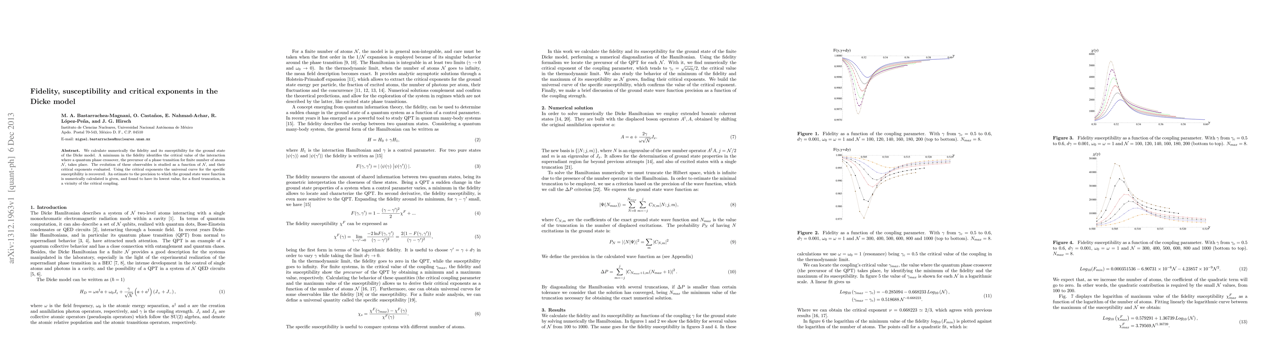 We calculate numerically the fidelity and its susceptibility for the ground state of the Dicke model. A minimum in the fidelity identifies the critical value of the interaction where a quantum phase crossover, the precursor of a phase transition for finite number of atoms N, takes place. The evolution of these observables is studied as a function of N, and their critical exponents evaluated. Using the critical exponents the universal curve for the specific susceptibility is recovered. An estimate to the precision to which the ground state wave function is numerically calculated is given, and found to have its lowest value, for a fixed truncation, in a vicinity of the critical coupling.