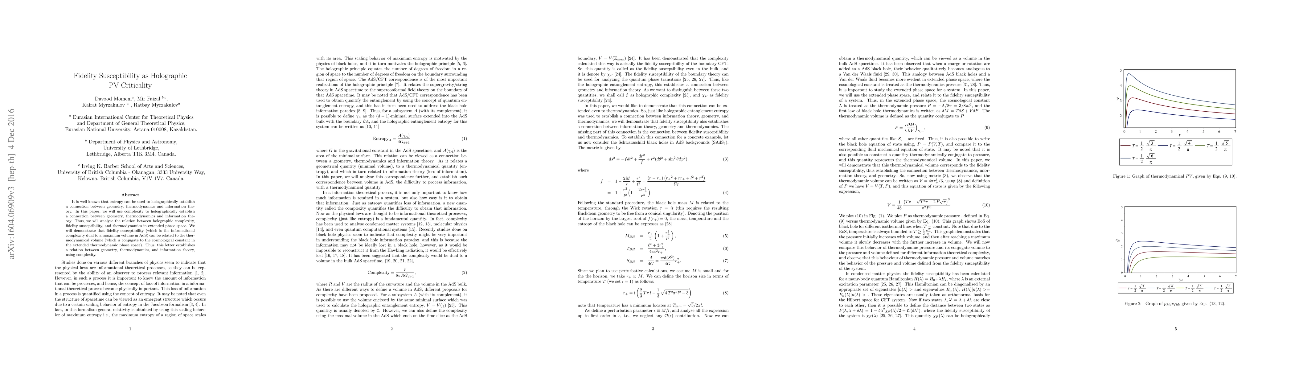 This paper explores the connection between holographic complexity, fidelity susceptibility, and thermodynamics in extended phase space, demonstrating that fidelity susceptibility, an informational complexity measure, correlates with the thermodynamical volume, thus linking geometry, thermodynamics, and information theory through complexity.