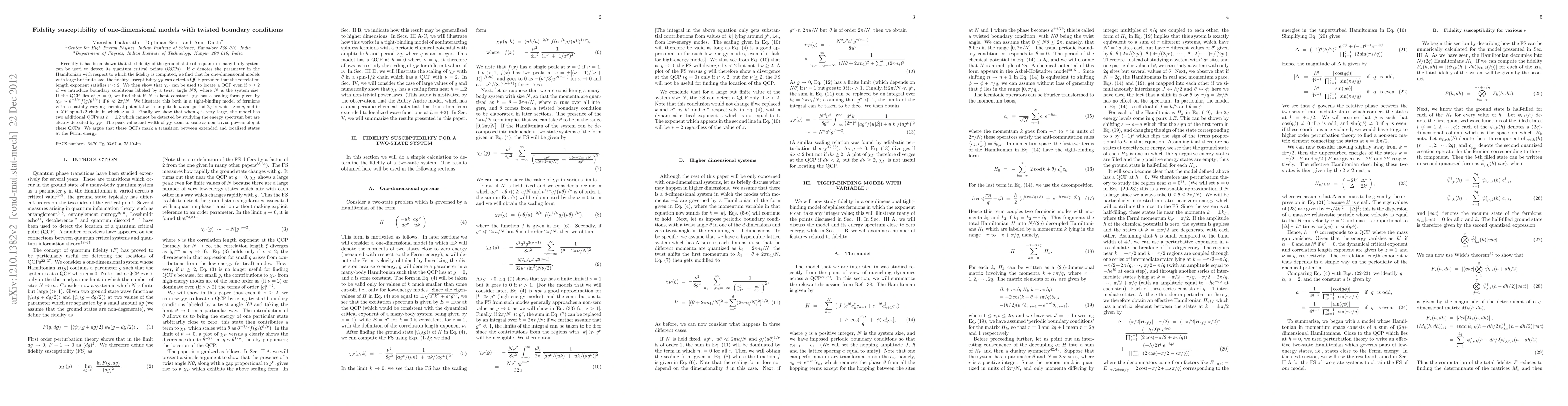 Recently it has been shown that the fidelity of the ground state of a quantum many-body system can be used to detect its quantum critical points (QCPs). If g denotes the parameter in the Hamiltonian with respect to which the fidelity is computed, we find that for one-dimensional models with large but finite size, the fidelity susceptibility \chi_F can detect a QCP provided that the correlation length exponent satisfies \nu < 2. We then show that \chi_F can be used to locate a QCP even if \nu \ge 2 if we introduce boundary conditions labeled by a twist angle N\theta, where N is the system size. If the QCP lies at g = 0, we find that if N is kept constant, \chi_F has a scaling form given by \chi_F \sim \theta^{-2/\nu} f(g/\theta^{1/\nu}) if \theta \ll 2\pi/N. We illustrate this both in a tight-binding model of fermions with a spatially varying chemical potential with amplitude h and period 2q in which \nu = q, and in a XY spin-1/2 chain in which \nu = 2. Finally we show that when q is very large, the model has two additional QCPs at h = \pm 2 which cannot be detected by studying the energy spectrum but are clearly detected by \chi_F. The peak value and width of \chi_F seem to scale as non-trivial powers of q at these QCPs. We argue that these QCPs mark a transition between extended and localized states at the Fermi energy.