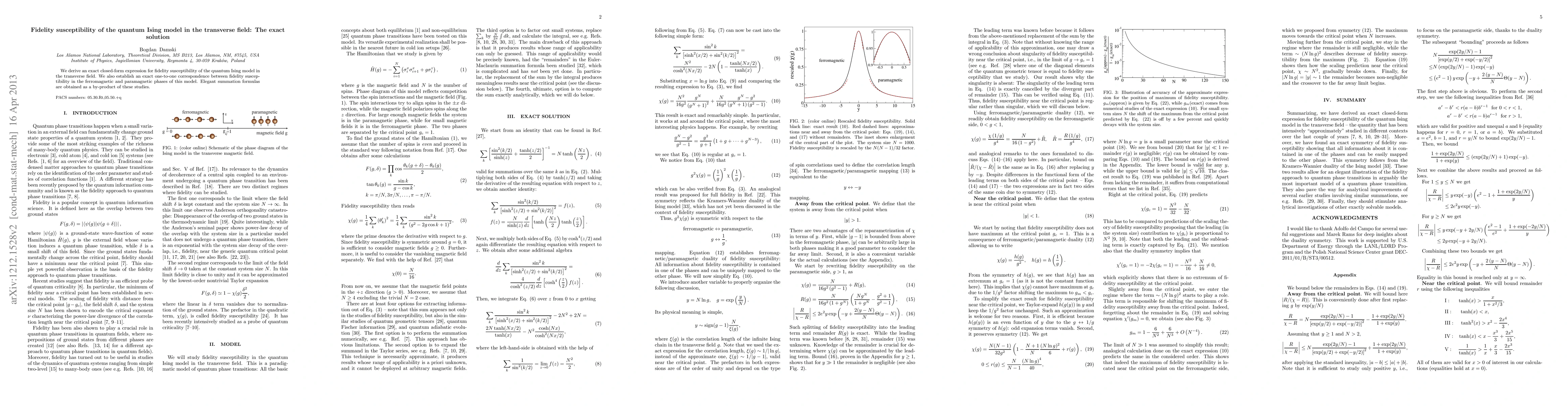 This paper provides an exact closed-form expression for the fidelity susceptibility of the quantum Ising model under a transverse field, revealing a one-to-one correspondence between susceptibilities in its ferromagnetic and paramagnetic phases, along with elegant summation formulas.