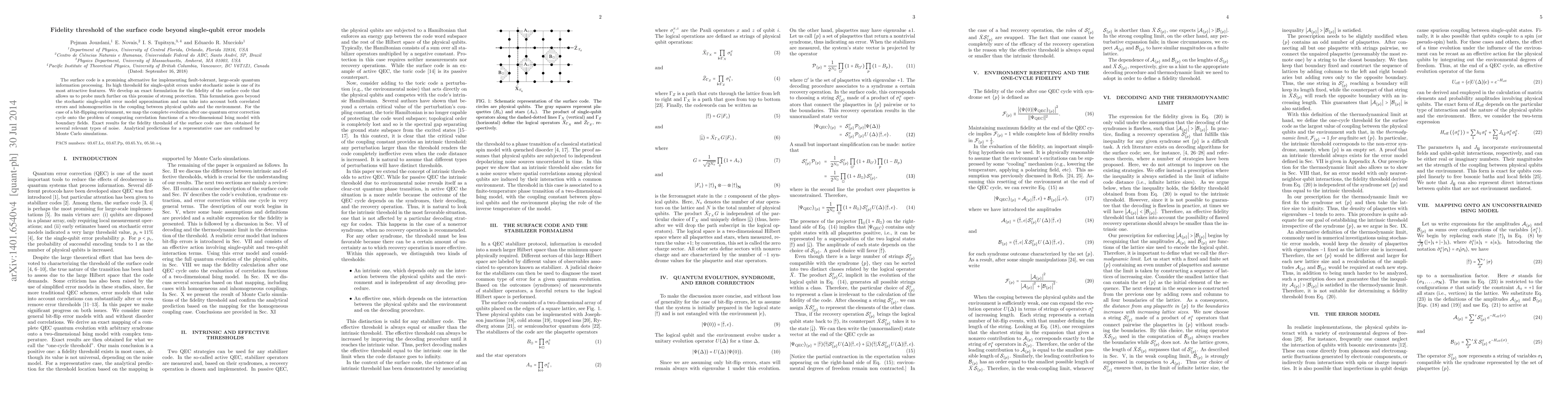 The surface code is one the most promising alternatives for implementing fault-tolerant, large-scale quantum information processing. Its high threshold for single-qubit errors under stochastic noise is one of its most attrative features. We develop an exact formulation for the fidelity of the surface code that allows us to probe much further on this promise of strong protection. This formulation goes beyond the stochastic single-qubit error model approximation and can take into account both correlated errors and inhomogeneities in the coupling between physical qubits and the environment. For the case of a bit-flipping environment, we map the complete evolution after one quantum error correction cycle onto the problem of computing correlation functions of a two-dimensional Ising model with boundary fields. Exact results for the fidelity threshold of the surface code are then obtained for several relevant types of noise. Analytical predictions for a representative case are confirmed by Monte Carlo simulations.