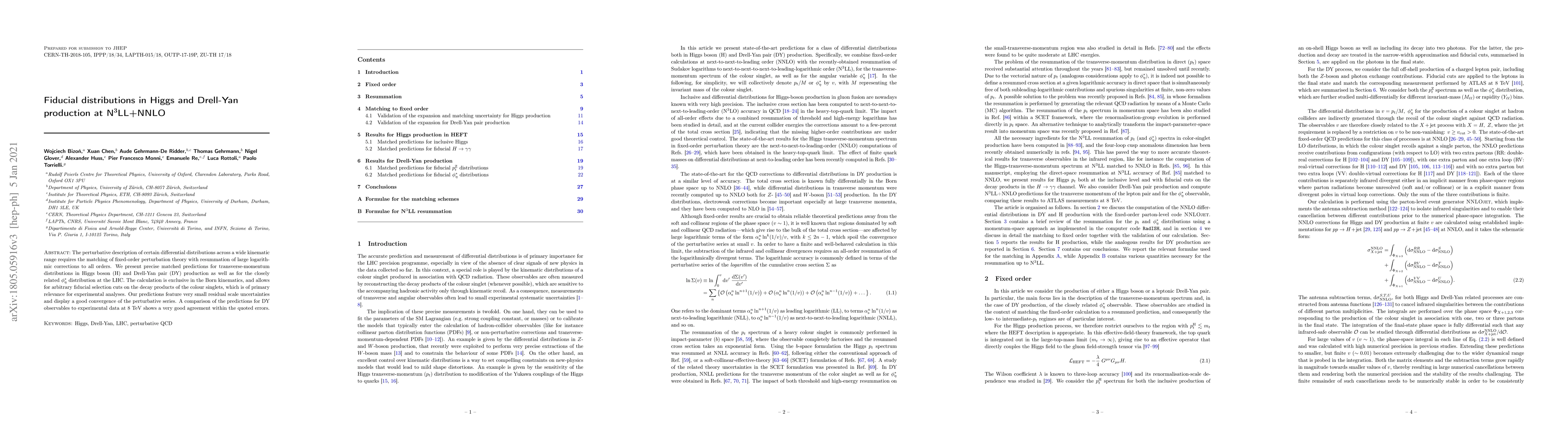 This paper presents precise matched predictions for differential distributions in Higgs and Drell-Yan production at the LHC, incorporating resummation of large logarithmic corrections. The results show good convergence and agreement with experimental data, featuring minimal residual uncertainties.