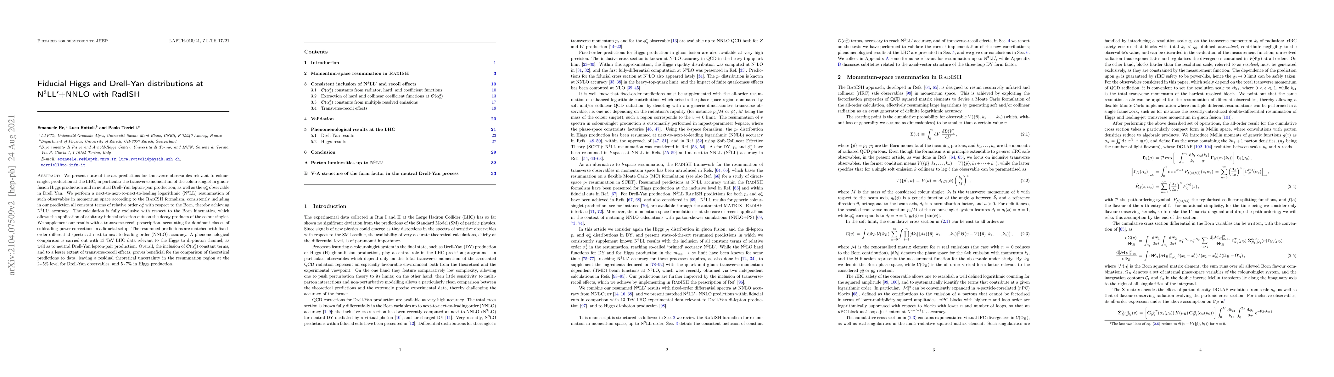 The paper presents a detailed implementation and validation of the N^3LL′+NNLO resummation in the RadISH framework, incorporating constant terms of order α_s^3 and a transverse-recoil prescription for improved kinematic description.