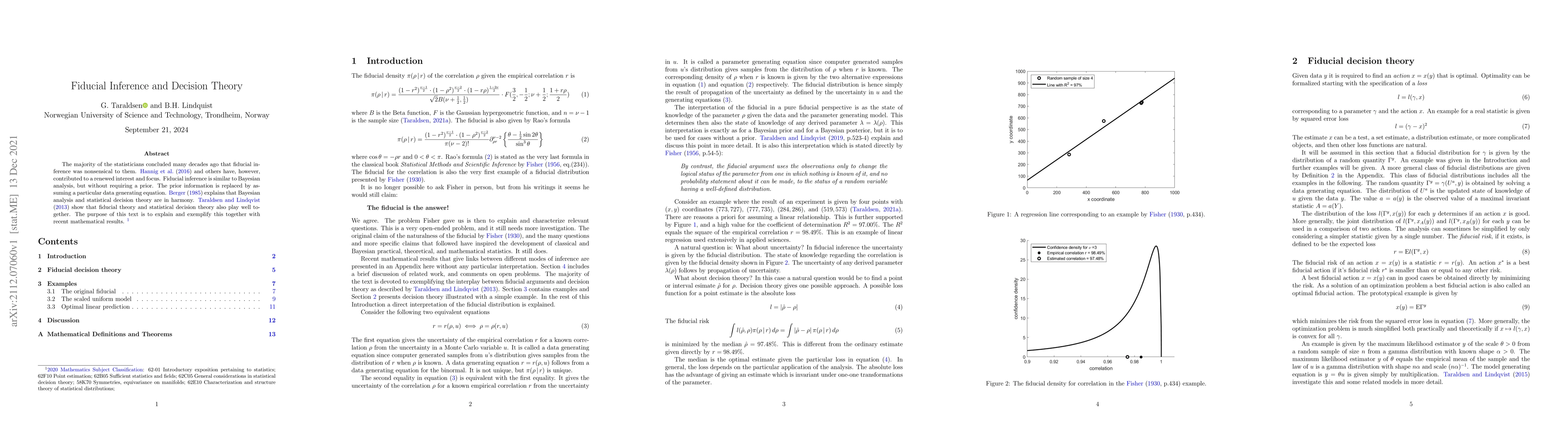 The majority of the statisticians concluded many decades ago that fiducial inference was nonsensical to them. Hannig et al. (2016) and others have, however, contributed to a renewed interest and focus. Fiducial inference is similar to Bayesian analysis, but without requiring a prior. The prior information is replaced by assuming a particular data generating equation. Berger (1985) explains that Bayesian analysis and statistical decision theory are in harmony. Taraldsen and Lindqvist (2013) show that fiducial theory and statistical decision theory also play well together. The purpose of this text is to explain and exemplify this together with recent mathematical results.