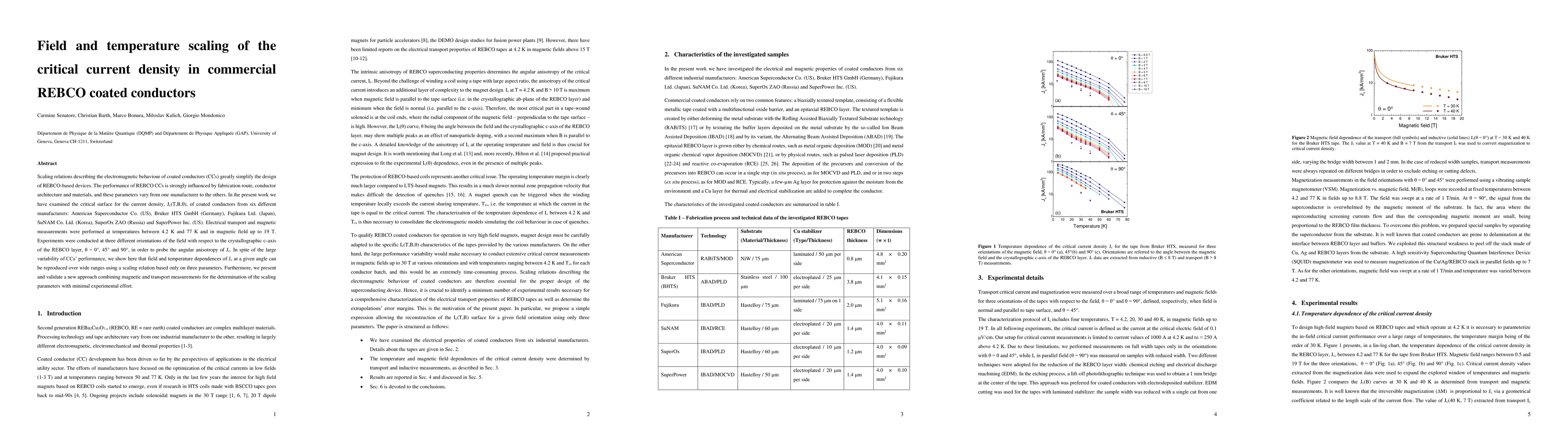 This study investigates the critical current density, Jc, of REBCO coated conductors from six different manufacturers under varying temperatures and magnetic fields, revealing a scaling relation that simplifies the design of REBCO-based devices despite differences in fabrication. The research introduces a new method for determining scaling parameters with minimal experimental effort.