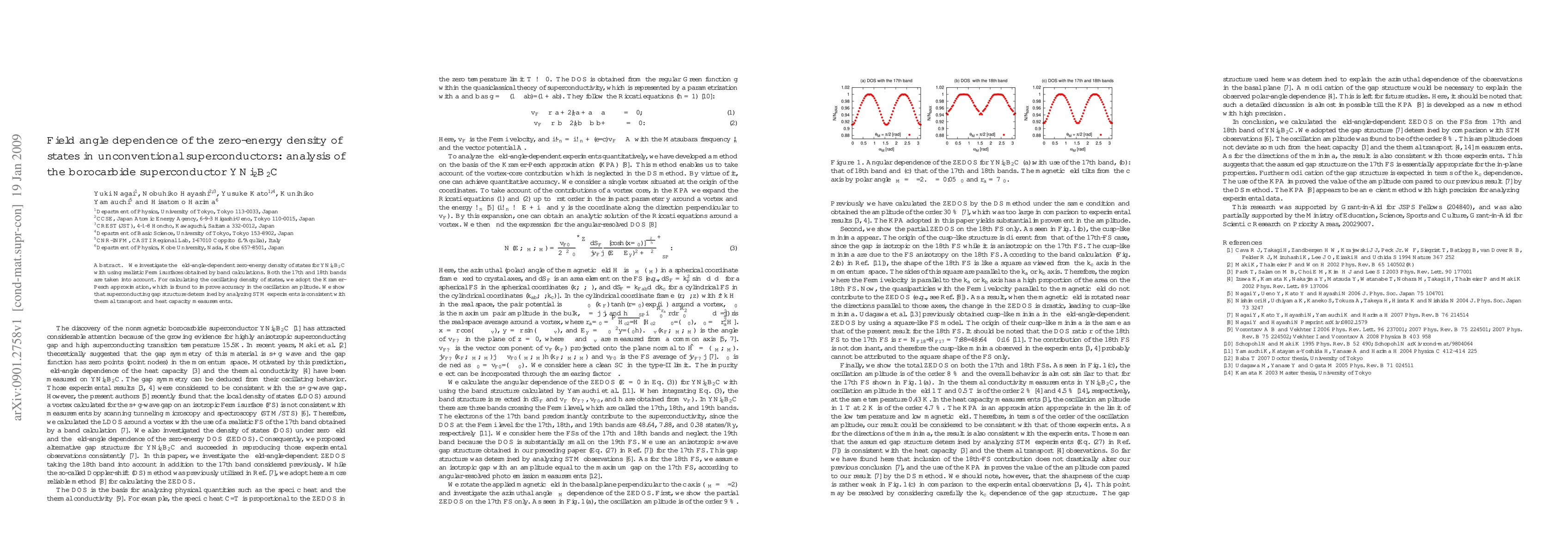 This study analyzes the field-angle dependence of the zero-energy density of states in the unconventional superconductor YNi2B2C, using band calculations for realistic Fermi surfaces and the Kramer-Pesch approximation for improved accuracy. The findings align superconducting gap structures from STM experiments with thermal transport and heat capacity measurements.