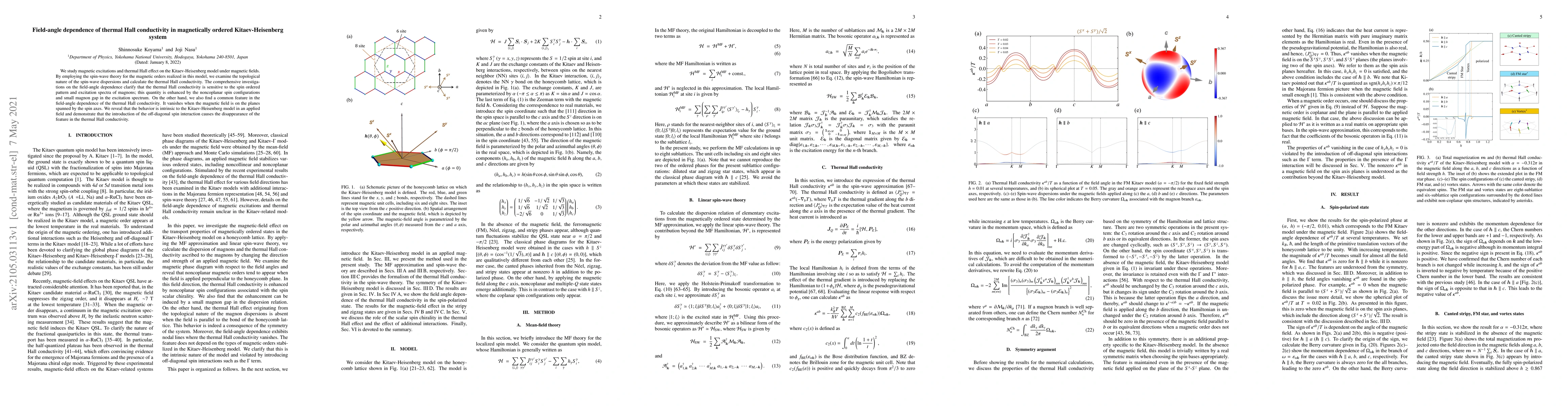 This paper investigates the thermal Hall conductivity in a magnetically ordered Kitaev-Heisenberg system under varying magnetic field angles, revealing its sensitivity to spin configurations and magnon spectra. The study finds that the thermal Hall conductivity vanishes when the field lies in the plane of spin axes, a behavior intrinsic to the model.