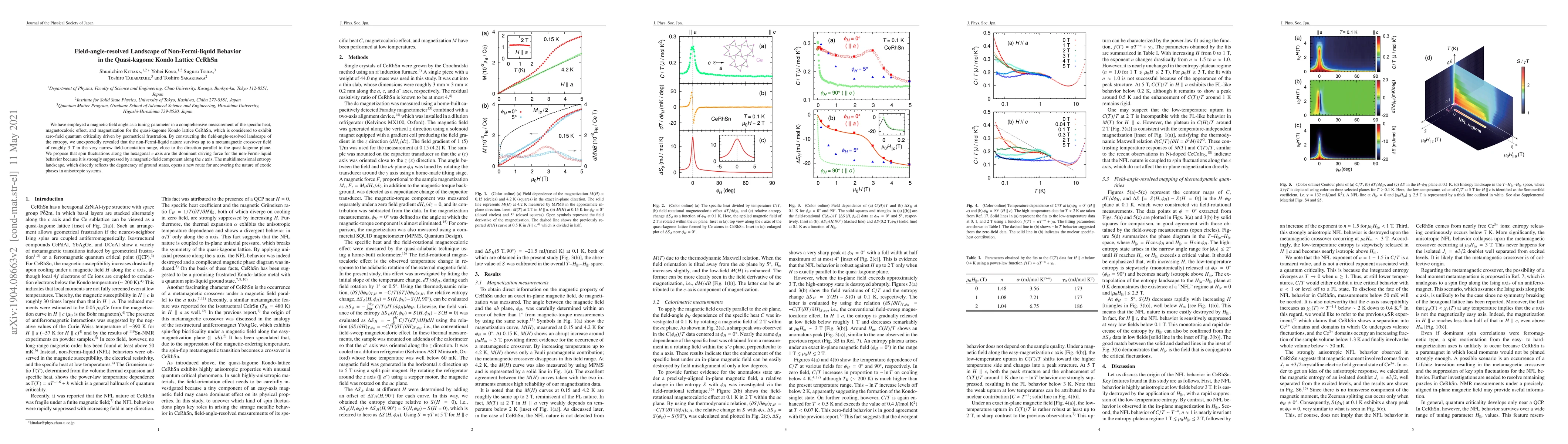 We have employed a magnetic field angle as a tuning parameter in a comprehensive measurement of the specific heat, magnetocaloric effect, and magnetization for the quasi-kagome Kondo lattice CeRhSn, which is considered to exhibit zero-field quantum criticality driven by geometrical frustration. By constructing the field-angle-resolved landscape of the entropy, we unexpectedly revealed that the non-Fermi-liquid nature survives up to a metamagnetic crossover field of roughly 3 T in the very narrow field-orientation range, close to the direction parallel to the quasi-kagome plane. We propose that spin fluctuations along the hexagonal $c$ axis are the dominant driving force for the non-Fermi-liquid behavior because it is strongly suppressed by a magnetic-field component along the $c$ axis. The multidimensional entropy landscape, which directly reflects the degeneracy of ground states, opens a new route for uncovering the nature of exotic phases in anisotropic systems.