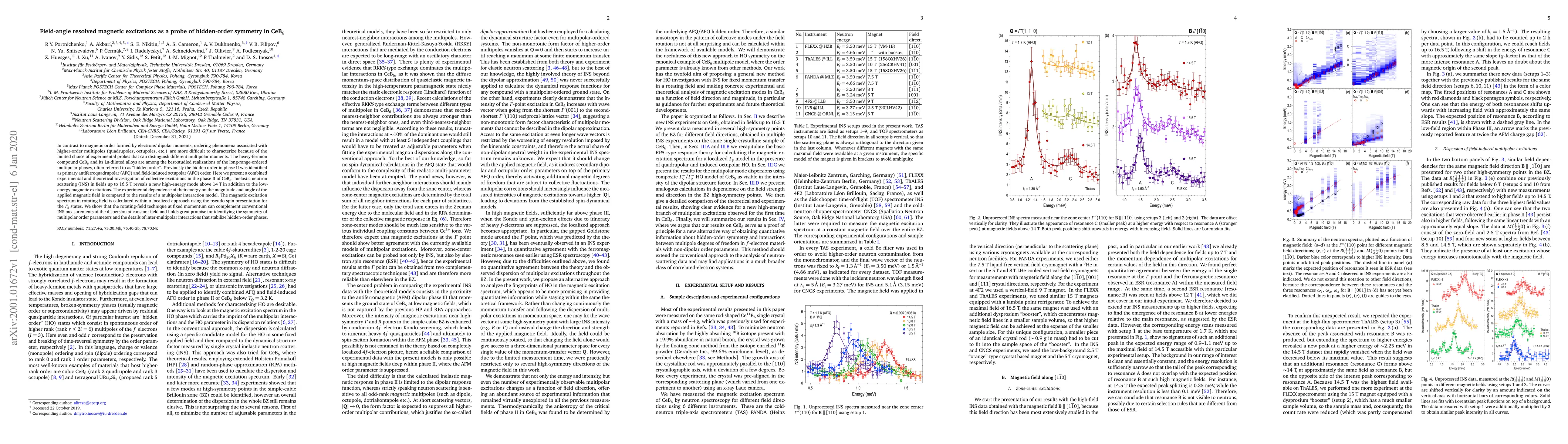 This paper investigates the magnetic excitations in CeB6 using field-angle resolved inelastic neutron scattering, revealing a new high-energy mode above 14 T. The study combines experimental data with theoretical models to identify the symmetry of multipolar order parameters, suggesting that rotating-field techniques can enhance the characterization of hidden-order phases.