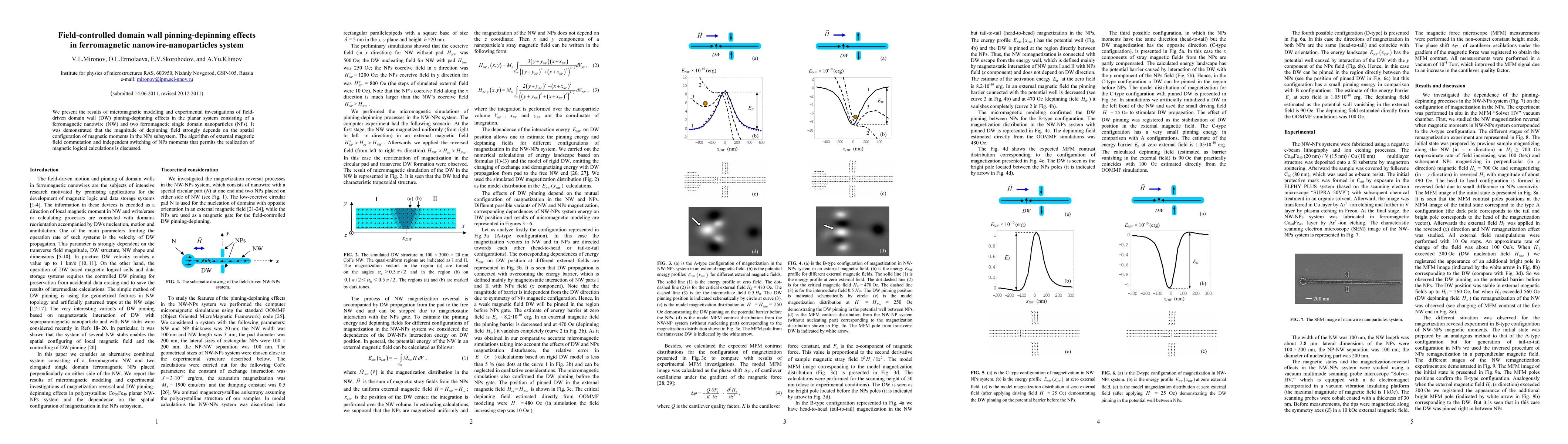 This paper investigates domain wall pinning-depinning in a hybrid ferromagnetic nanowire-nanoparticle system using micromagnetic modeling and magnetic force microscopy. The study reveals a controllable domain wall manipulation technique based on the switching of magnetization in nanoparticles, proposing a new magnetic logic cell design.