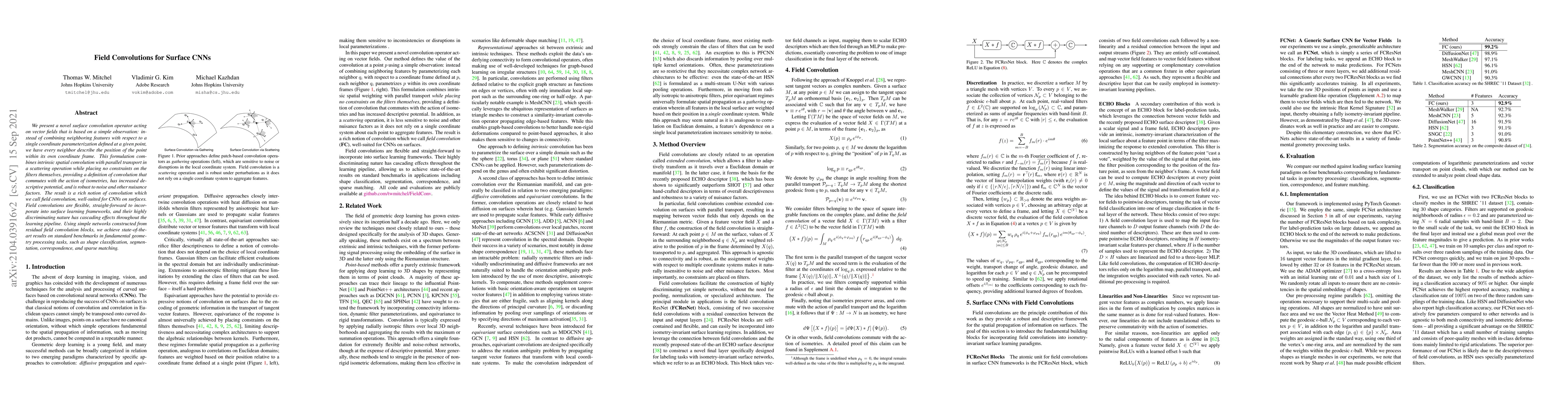 We present a novel surface convolution operator acting on vector fields that is based on a simple observation: instead of combining neighboring features with respect to a single coordinate parameterization defined at a given point, we have every neighbor describe the position of the point within its own coordinate frame. This formulation combines intrinsic spatial convolution with parallel transport in a scattering operation while placing no constraints on the filters themselves, providing a definition of convolution that commutes with the action of isometries, has increased descriptive potential, and is robust to noise and other nuisance factors. The result is a rich notion of convolution which we call field convolution, well-suited for CNNs on surfaces. Field convolutions are flexible, straight-forward to incorporate into surface learning frameworks, and their highly discriminating nature has cascading effects throughout the learning pipeline. Using simple networks constructed from residual field convolution blocks, we achieve state-of-the-art results on standard benchmarks in fundamental geometry processing tasks, such as shape classification, segmentation, correspondence, and sparse matching.