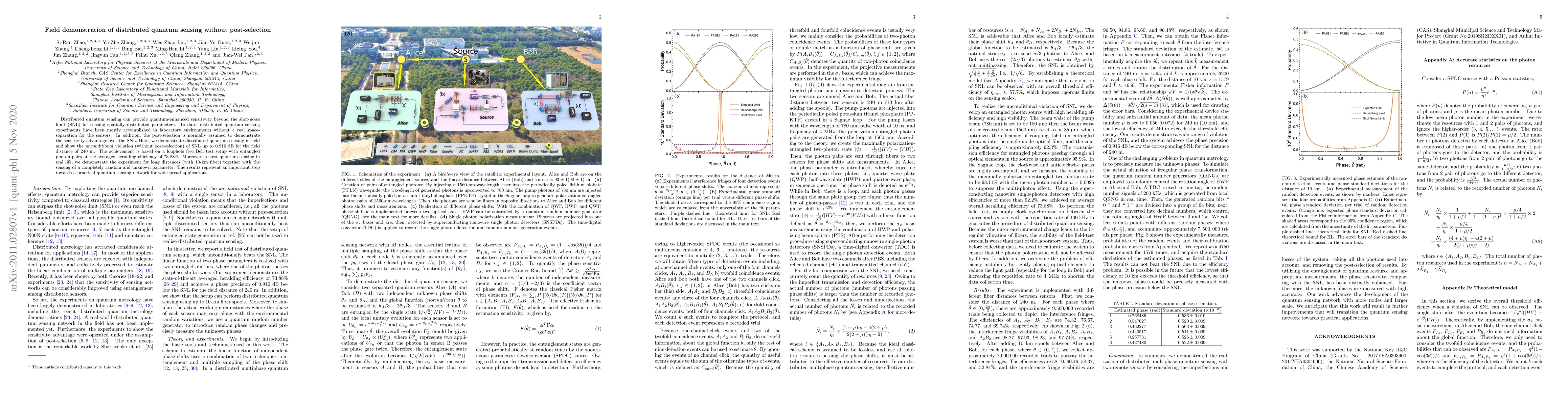 Distributed quantum sensing can provide quantum-enhanced sensitivity beyond the shot-noise limit (SNL) for sensing spatially distributed parameters. To date, distributed quantum sensing experiments have been mostly accomplished in laboratory environments without a real space separation for the sensors. In addition, the post-selection is normally assumed to demonstrate the sensitivity advantage over the SNL. Here, we demonstrate distributed quantum sensing in field and show the unconditional violation (without post-selection) of SNL up to 0.916 dB for the field distance of 240 m. The achievement is based on a loophole free Bell test setup with entangled photon pairs at the averaged heralding efficiency of 73.88%. Moreover, to test quantum sensing in real life, we demonstrate the experiment for long distances (with 10-km fiber) together with the sensing of a completely random and unknown parameter. The results represent an important step towards a practical quantum sensing network for widespread applications.