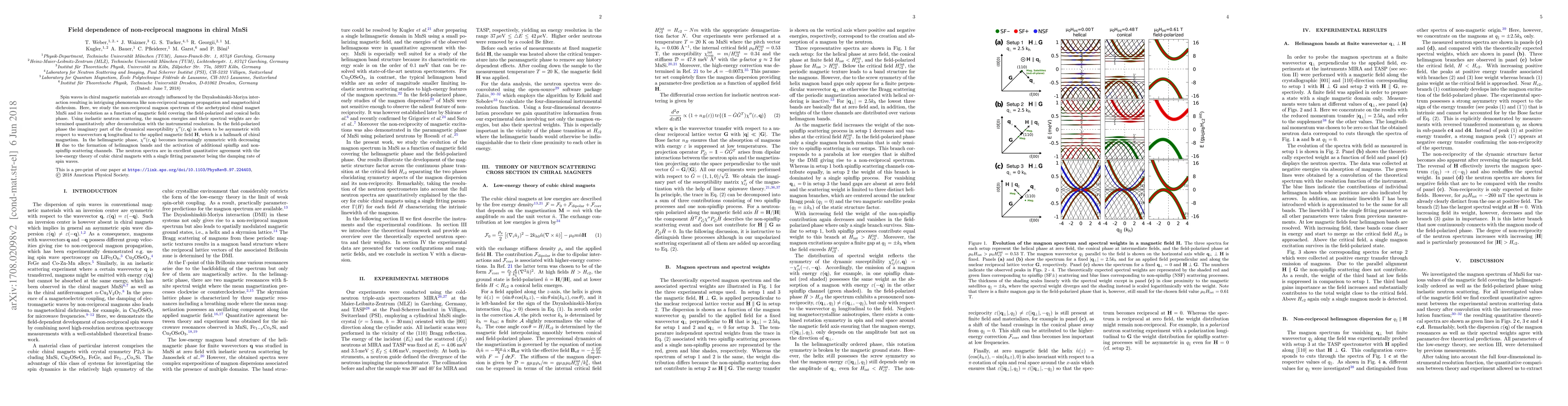 Researchers studied non-reciprocal magnon propagation in chiral MnSi under various magnetic fields, revealing asymmetric and symmetric behaviors depending on the field strength, with implications for our understanding of chiral magnetism.